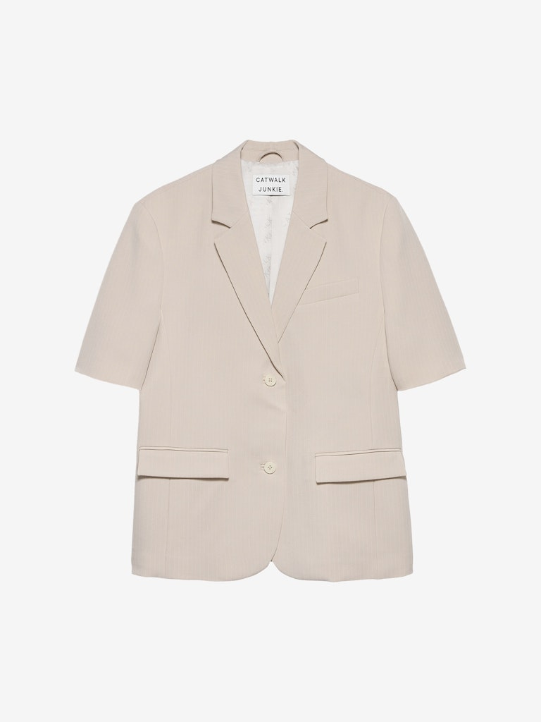Deze beige dames blazer van Catwalk Junkie is de perfecte toevoeging aan je zomergarderobe. De korte mouwen geven de blazer een vrouwelijke touch en maken het geschikt voor warmere dagen. Het merk staat bekend om haar trendy en stoere stijl, wat ook terug te zien is in dit item. De blazer is gemaakt van een mix van materialen, namelijk 91% polyester, 5% elastaan en 4% viscose. Dit zorgt voor een comfortabele pasvorm en maakt het item ook nog eens makkelijk te onderhouden. De blazer dient met de hand gewassen te worden, zodat je er nog jarenlang plezier van kunt hebben. Met deze blazer ben je helemaal klaar voor de zomer van 2026.