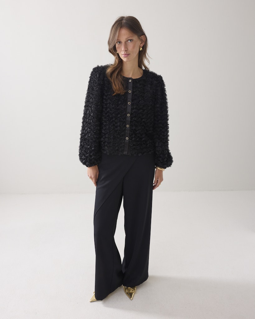 Het zwarte dames blazers jasje van het merk Summum is een echte must-have voor de winter van 2025. Het jasje heeft een elegante uitstraling en is perfect voor zowel zakelijke als casual gelegenheden. De lange mouwen zorgen voor extra warmte en het jasje sluit met een knoop. Het model van het jasje is tijdloos en past bij elke outfit. Met dit jasje ben je helemaal on-trend en straal je de stijl van Summum uit.