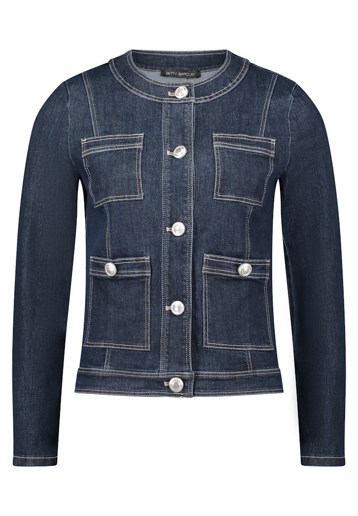 Deze prachtige dames blazer van het merk Betty Barclay is een must-have voor elke vrouwelijke garderobe. De blazer is perfect voor het zomerseizoen en heeft een tijdloze uitstraling dankzij de donkerblauwe denim kleur. Het materiaal bestaat uit 70% katoen, 23% polyester, 4% Lyocell en 3% Elastaan, wat zorgt voor een comfortabele pasvorm en een lichte stretch. De blazer kan eenvoudig gestreken worden op een lage temperatuur en blijft zo altijd netjes en verzorgd. Met deze blazer ben je helemaal klaar voor het jaar 2026 en kun je eindeloos combineren met verschillende outfits. Bestel deze blazer nu en voeg een vleugje stijl toe aan je kledingkast!