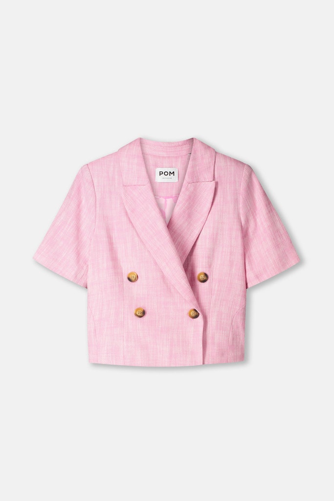 Deze lichtroze dames blazer van het merk Pom is perfect voor de zomer. De blazer heeft een vrouwelijke V-hals en korte mouwen, waardoor het een luchtig en stijlvol item is voor warmere dagen. De blazer sluit met een knoop en is gemaakt van 100% katoen, wat zorgt voor een comfortabele en ademende pasvorm. Deze blazer is een must-have voor elke vrouw die op zoek is naar een trendy en tijdloos kledingstuk. Met zijn kenmerkende merkstijl en roze kleur is deze blazer een echte eyecatcher. Perfect voor een dag op kantoor of een avondje uit, deze blazer past bij elke gelegenheid. Verrijk je garderobe met deze prachtige blazer en straal in 2026!