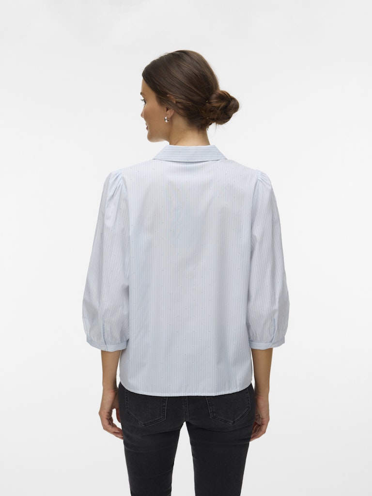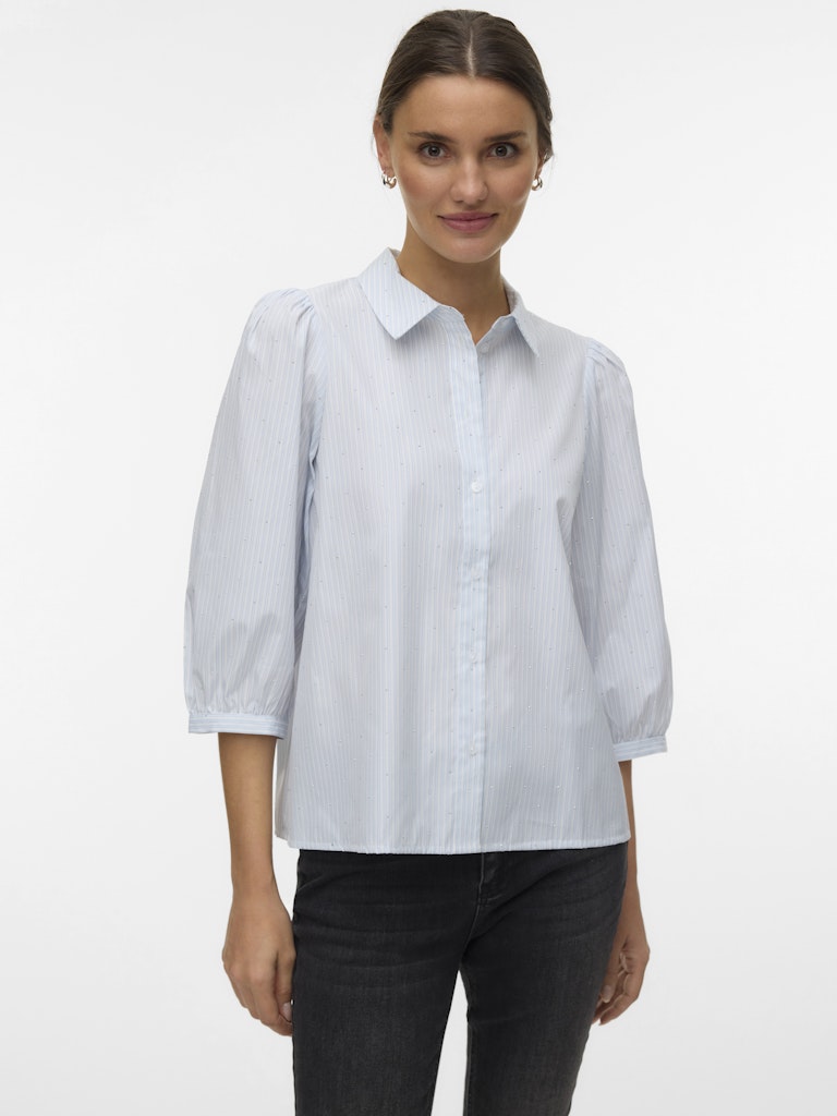 Deze stijlvolle dames blouse van het merk Vero Moda is perfect voor de zomer. Het vrouwelijke design en de lichte kleuren Cloud Dancer en Brunnera blue geven de blouse een frisse uitstraling. Het buitenmateriaal van de blouse bestaat uit 56% polyester en 44% viscose, wat zorgt voor een comfortabele pasvorm. De blouse dient met de hand gewassen te worden om de kwaliteit te behouden. Met deze blouse ben je helemaal klaar voor het seizoen van 2026.