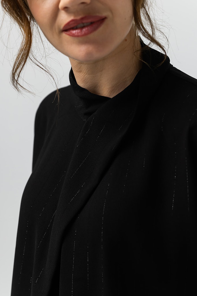 Deze zwarte dames blouse van Label Dot is een must-have voor elke vrouw die op zoek is naar een tijdloze en stijlvolle toevoeging aan haar garderobe. De lange mouwen en de klassieke kraag geven de blouse een elegante uitstraling, perfect voor de winter van 2025. Het merk Label Dot staat bekend om haar kwalitatieve en trendy kledingstukken en deze blouse is daar geen uitzondering op. Het is een tijdloos item dat je eindeloos kunt combineren en geschikt is voor elke gelegenheid. Met deze blouse ben je verzekerd van een stijlvolle en vrouwelijke look, ongeacht het seizoen.