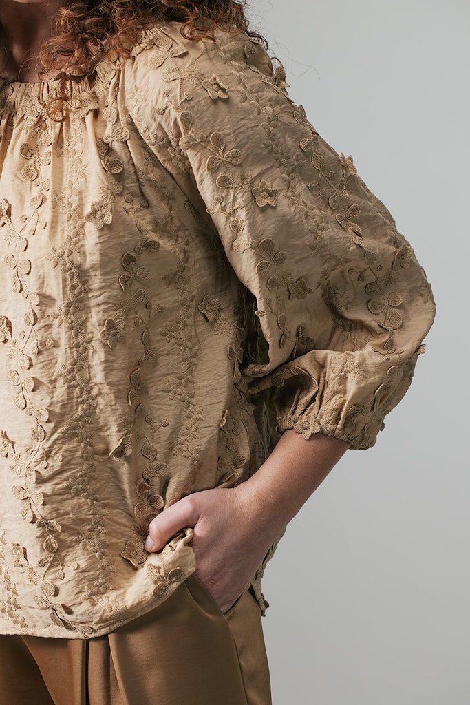 Deze elegante dames blouse van het merk Label Dot is een must-have voor elke vrouwelijke garderobe. De blouse is perfect voor de zomer dankzij de luchtige stof van 88% viscose en 12% polyamide. De gouden kleur geeft de blouse een chique uitstraling, terwijl de ronde hals en half lange mouwen zorgen voor een speels en vrouwelijk effect. De beige zoekkleur maakt deze blouse tijdloos en geschikt voor elke gelegenheid. Met deze blouse ben je helemaal klaar voor het zomerseizoen van 2026.
