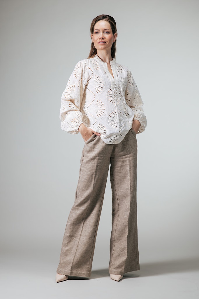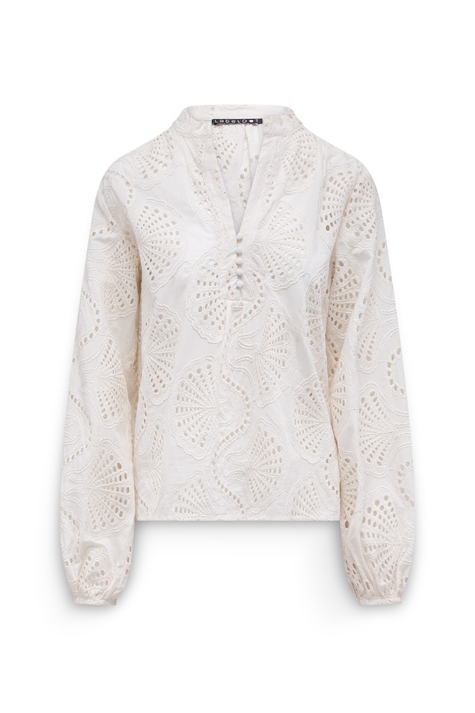 Deze ecrukleurige dames blouse van Label Dot is een must-have voor elke vrouwelijke garderobe. De lange mouwen maken het geschikt voor zowel de zomer als de koudere seizoenen. De V-hals geeft de blouse een elegante uitstraling en het materiaal van 100% katoen zorgt voor een comfortabele pasvorm. De blouse is perfect te combineren met verschillende outfits en kan zowel casual als zakelijk gedragen worden. Met deze blouse ben je helemaal on-trend in 2026.