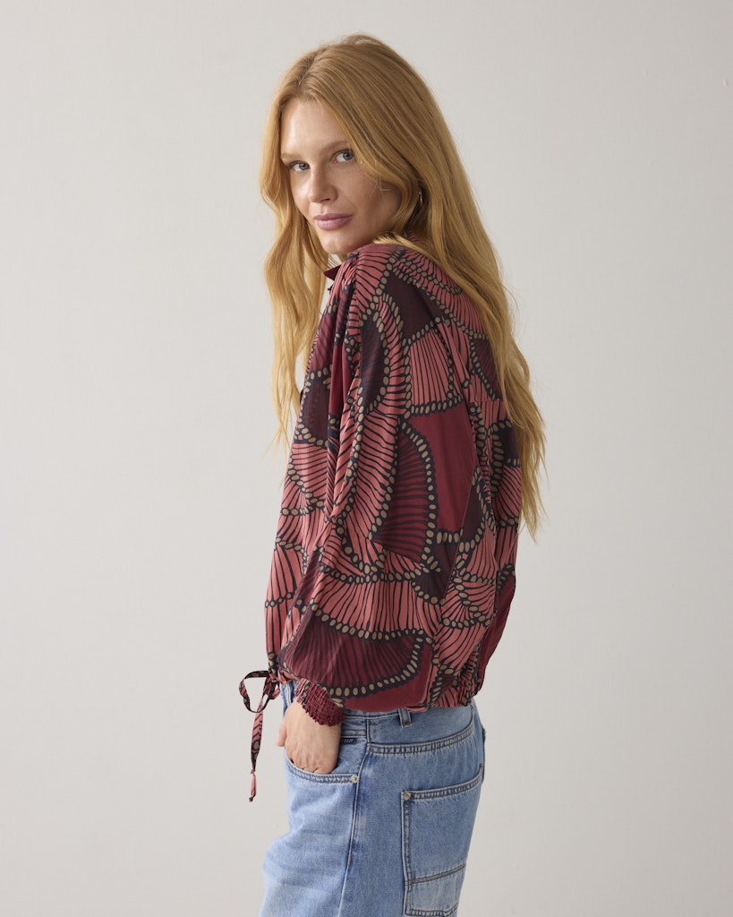 Deze prachtige dames blouse van Summum is perfect voor de zomer. De blouse heeft een opvallende rode print en lange mouwen. Het is een vrouwelijk item dat gemakkelijk te combineren is met verschillende outfits. De blouse sluit met knopen en is gemaakt van een mix van 52% viscose en 48% katoen. Hierdoor voelt hij heerlijk zacht aan op de huid en is hij luchtig om te dragen tijdens warme dagen. De blouse is geschikt voor reiniging in machines met oplosmiddelen zoals perchloorethyleen en koolwaterstoffen. Met deze blouse ben je helemaal on-trend en straal je de stijl van Summum uit. Perfect voor de moderne vrouw die er graag fashionable uitziet.