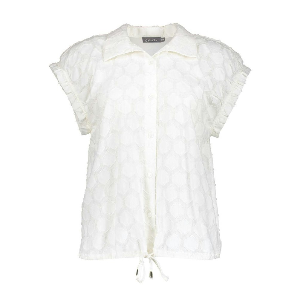 Deze witte dames blouse van het merk Geisha is perfect voor de zomer van 2026. De blouse heeft een vrouwelijke pasvorm en korte mouwen, waardoor het een luchtige en stijlvolle keuze is voor warmere dagen. Gemaakt van 98% katoen en 2% metaal, voelt de blouse zacht en comfortabel aan op de huid. De Geisha stijl is duidelijk terug te zien in de elegante snit en de subtiele details. Een must-have voor elke vrouw die op zoek is naar een tijdloos en trendy kledingstuk.