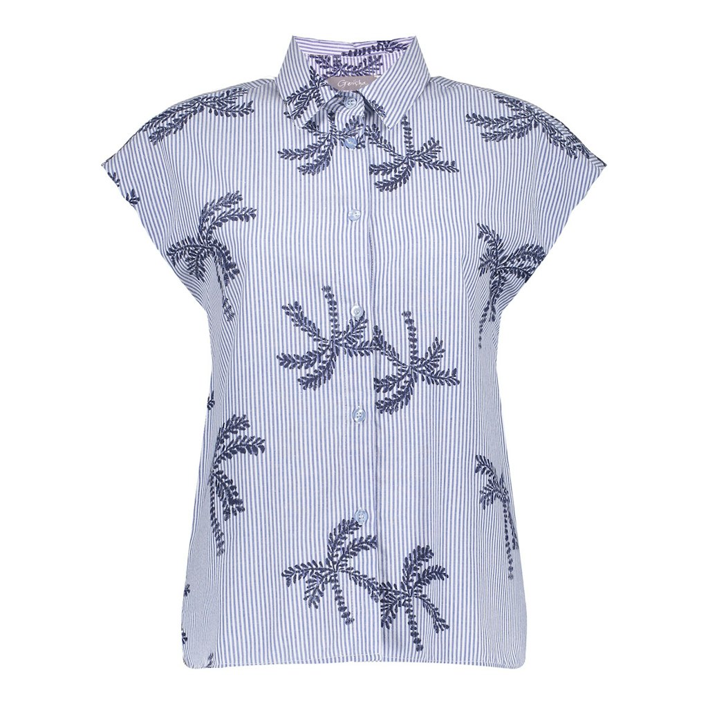 Deze prachtige dames blouse van het merk Geisha is perfect voor de zomer. De blouse heeft een vrouwelijke uitstraling en is voorzien van korte mouwen. De blouse heeft een mooie blauwe print op een witte achtergrond, wat zorgt voor een frisse en zomerse look. De blouse is gemaakt van 65% polyester en 35% katoen, waardoor het comfortabel en licht aanvoelt op de huid. Met deze blouse ben je helemaal klaar voor de zomer van 2026.