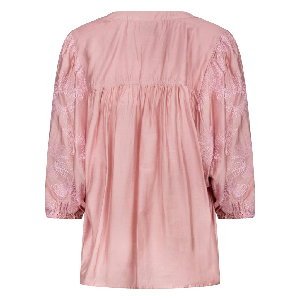 Deze roze dames blouse van NUKUS is de perfecte toevoeging aan je zomergarderobe. De blouse heeft een vrouwelijke uitstraling en is gemaakt van 90% viscose en 10% polyester, waardoor het licht en luchtig aanvoelt tijdens warme dagen. De half lange mouwen zorgen voor een speels effect en maken deze blouse geschikt voor zowel casual als formele gelegenheden. De roze kleur is helemaal in lijn met de trendkleur van dit seizoen en geeft een frisse en vrolijke touch aan je outfit. Met deze blouse ben je helemaal klaar voor de zomer van 2026.