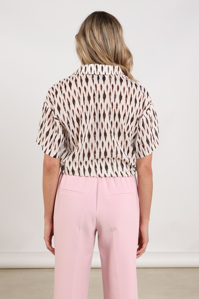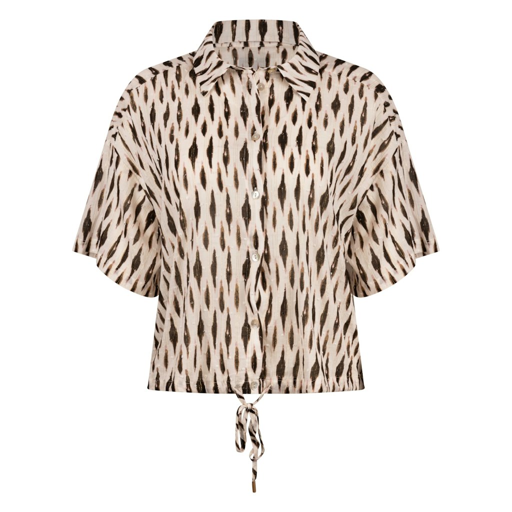 De NUKUS dames blouse is de perfecte toevoeging aan elke zomergarderobe. Het is een stijlvolle en vrouwelijke blouse met korte mouwen en een prachtige bruine print. De blouse is gemaakt van hoogwaardig materiaal, bestaande uit 98% katoen en 2% viscose, wat zorgt voor een comfortabele en luchtige pasvorm. De blouse is geschikt voor elke gelegenheid en past perfect bij de merkstijl van NUKUS. Met deze blouse ben je helemaal klaar voor het zomerseizoen van 2026.