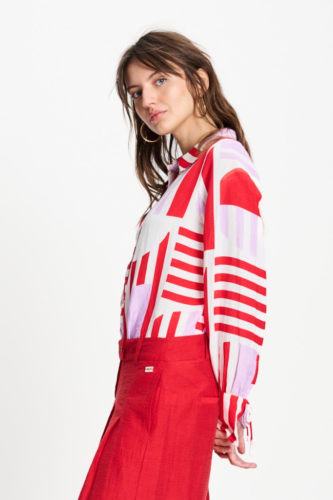 Deze prachtige dames blouse van het merk Pom is een echte eyecatcher. Met zijn opvallende rode print en lange mouwen is deze blouse perfect voor de zomer. Het materiaal, bestaande uit 70% viscose en 30% vlas of linnen, zorgt voor een comfortabele en luchtige pasvorm. De blouse is geschikt voor vrouwen en past perfect bij de merkstijl van Pom. Met deze blouse ben je helemaal klaar voor het seizoen van 2026. De multicolor print maakt het een veelzijdig kledingstuk dat gemakkelijk te combineren is met verschillende outfits. Een must-have voor elke vrouwelijke garderobe.