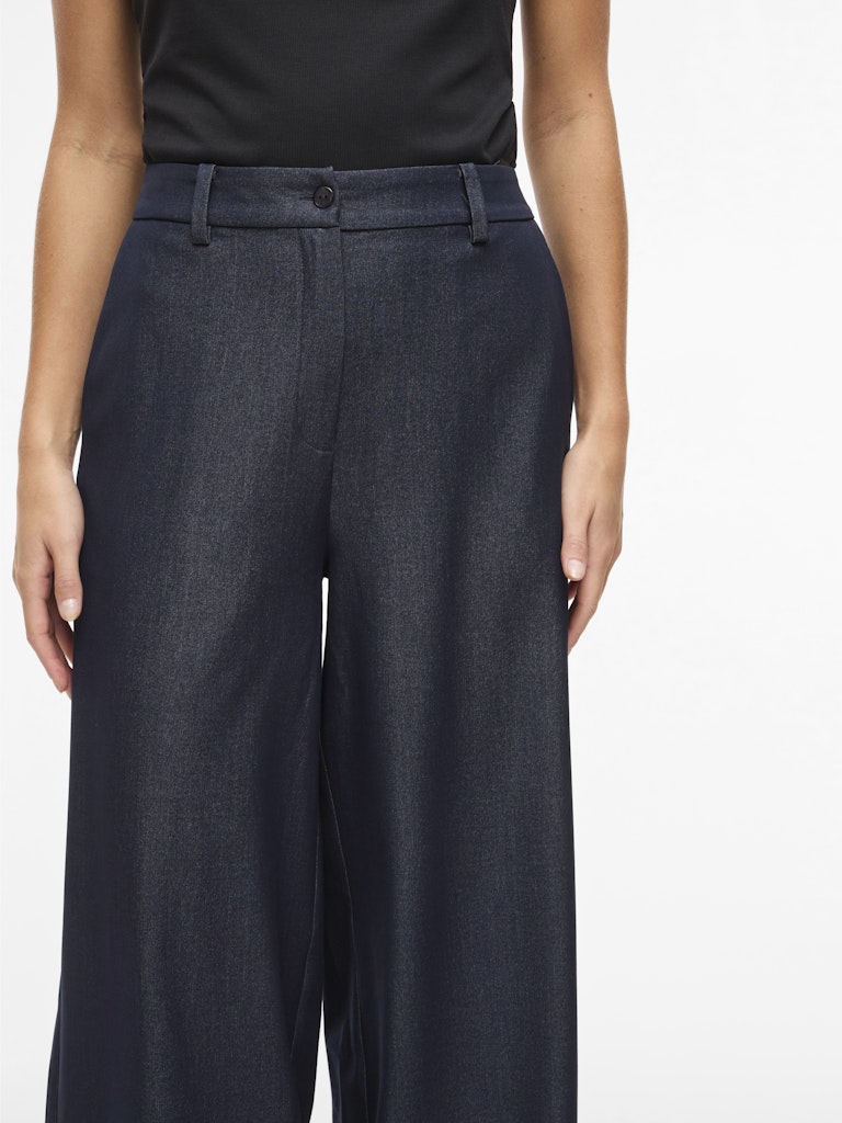 Deze prachtige dames broek van het merk Vila is perfect voor de zomer. De broek heeft een vrouwelijke pasvorm en is uitgevoerd in de kleur Navy Blazer/Melange, een mooie combinatie van blauw en grijs. Het materiaal van de broek bestaat uit 65% polyester, 33% viscose en 2% elastaan, waardoor het comfortabel en licht aanvoelt. De broek is gemakkelijk te combineren met verschillende tops en is geschikt voor zowel een casual als een meer geklede look. Dankzij de lage temperatuur waarop de broek gestreken kan worden, blijft deze er altijd netjes uitzien. Met deze broek ben je helemaal klaar voor de zomer van 2026!