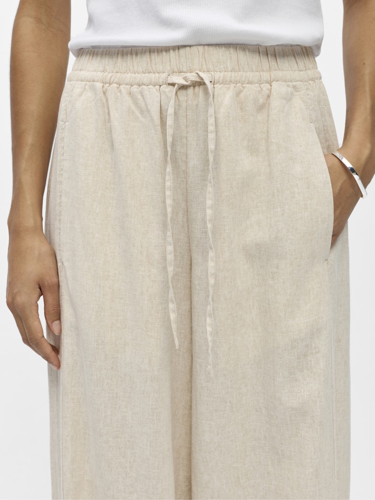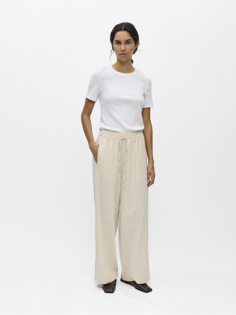 Deze dames broek van het merk Object is perfect voor de zomer. Het is een must-have voor elke vrouwelijke garderobe. De broek heeft een prachtige grijze kleur genaamd Birch/Melange, wat perfect past bij het seizoen. Het materiaal van de broek bestaat uit 55% vlas of linnen en 45% viscose, wat zorgt voor een comfortabele en luchtige fit. De broek kan gemakkelijk gereinigd worden in de reinigingsmachine met oplosmiddelen zoals perchloorethyleen en koolwaterstoffen. Met deze broek ben je helemaal klaar voor de zomer van 2026.