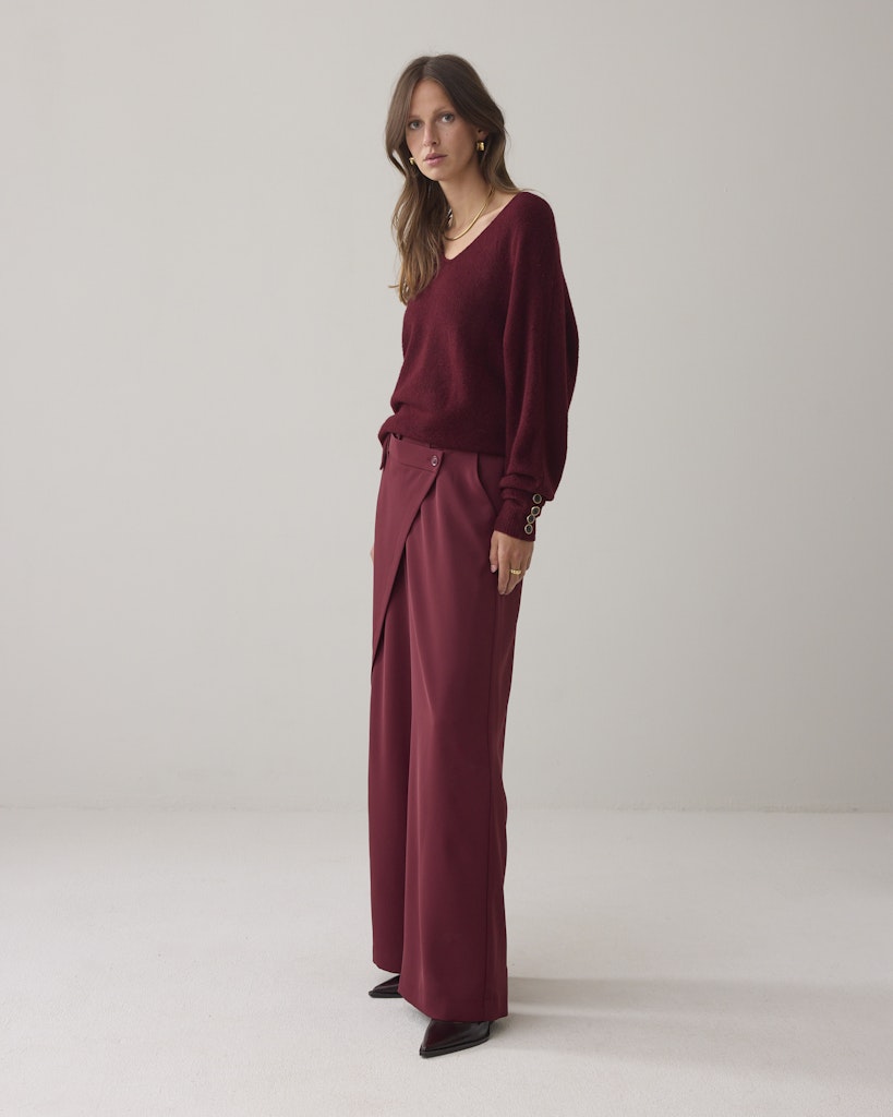 Deze prachtige donker rode dames broek van het merk Summum is een echte must-have voor de winter van 2025. De broek is gemaakt van hoogwaardige materialen en heeft een perfecte pasvorm. De stijlvolle uitstraling van Summum komt duidelijk naar voren in deze broek, waardoor je er gegarandeerd fashionable uitziet. De broek is geschikt voor elke gelegenheid en is een tijdloze toevoeging aan je garderobe. Met deze broek van Summum ben je verzekerd van comfort en stijl, het hele winterseizoen lang.