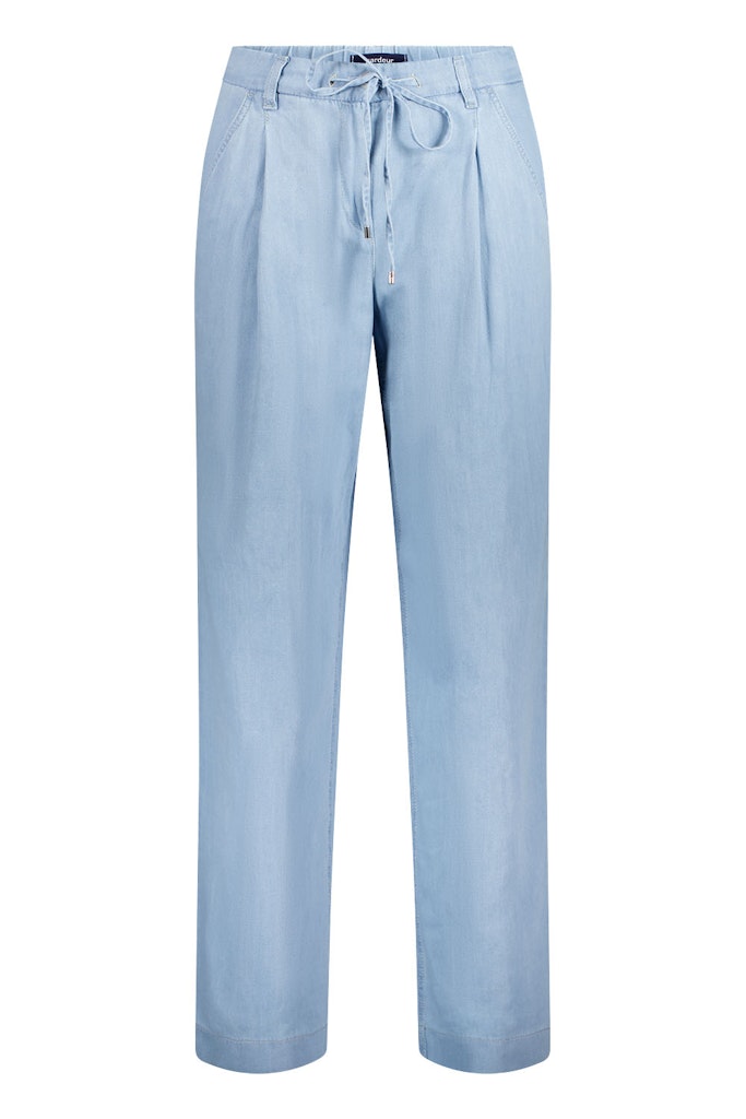 Deze lichtblauwe dames broek van Atelier Gardeur is perfect voor de zomer. Het merk staat bekend om haar stijlvolle en tijdloze ontwerpen en dat is ook terug te zien in deze broek. Het is gemaakt van een mix van katoen, Lyocell en vlas, waardoor het een luchtige en comfortabele stof is voor warme dagen. De broek heeft een licht stone kleur, wat zorgt voor een frisse en zomerse uitstraling. Het is een must-have voor elke vrouwelijke garderobe en kan gemakkelijk gecombineerd worden met verschillende outfits. Deze broek is geschikt voor reinigingsmachines met oplosmiddelen zoals perchloorethyleen en koolwaterstoffen. Met deze broek loop je er stijlvol en comfortabel bij deze zomer.