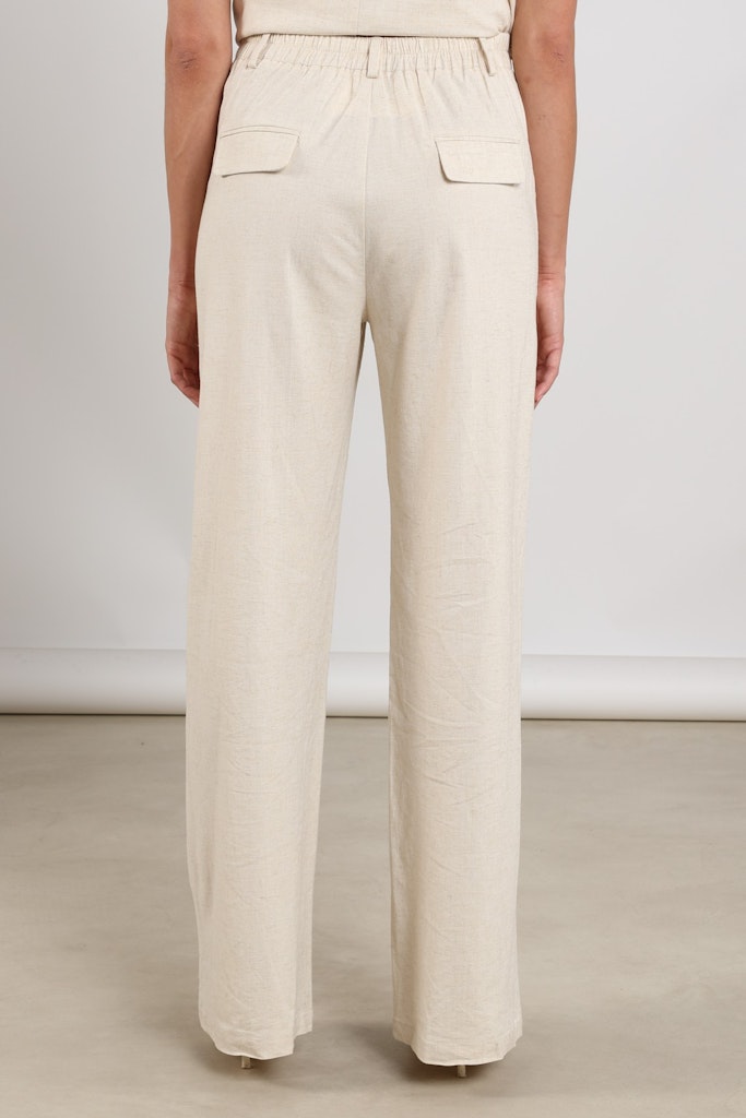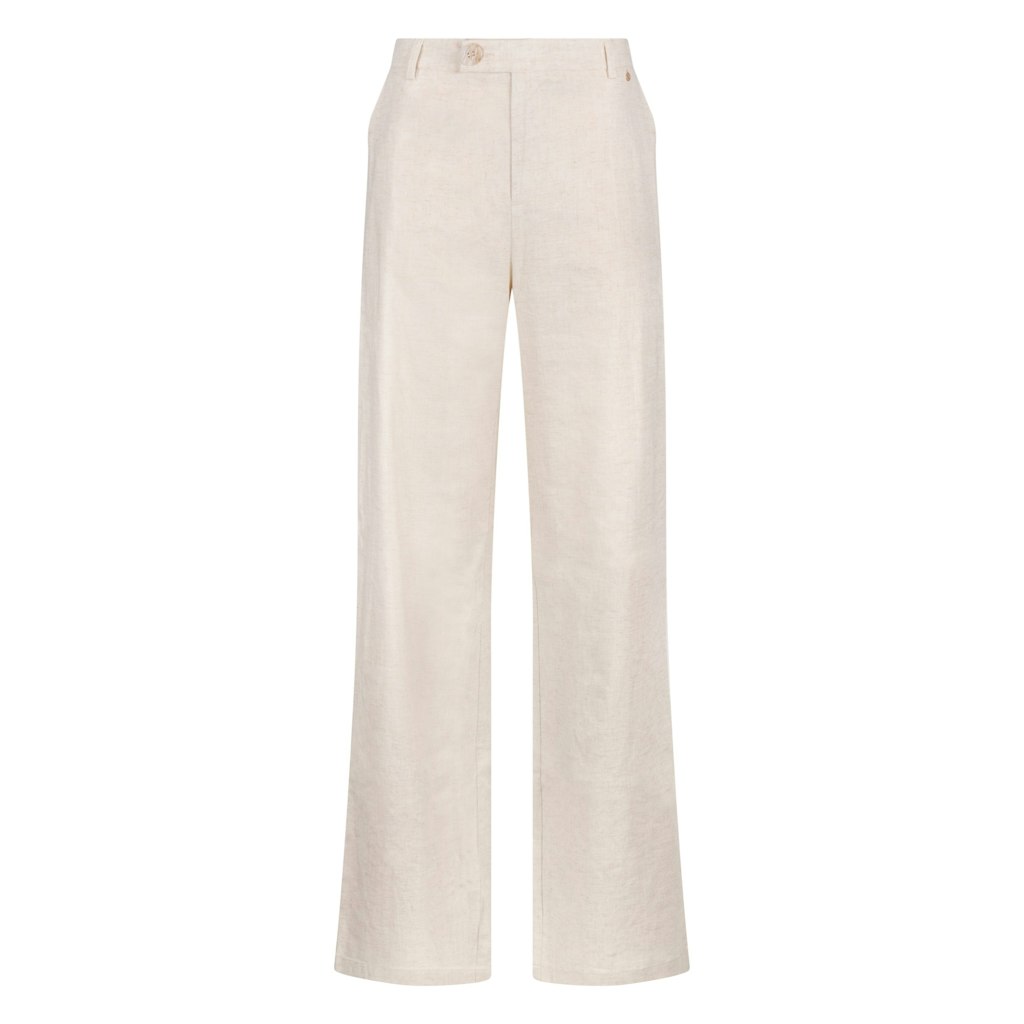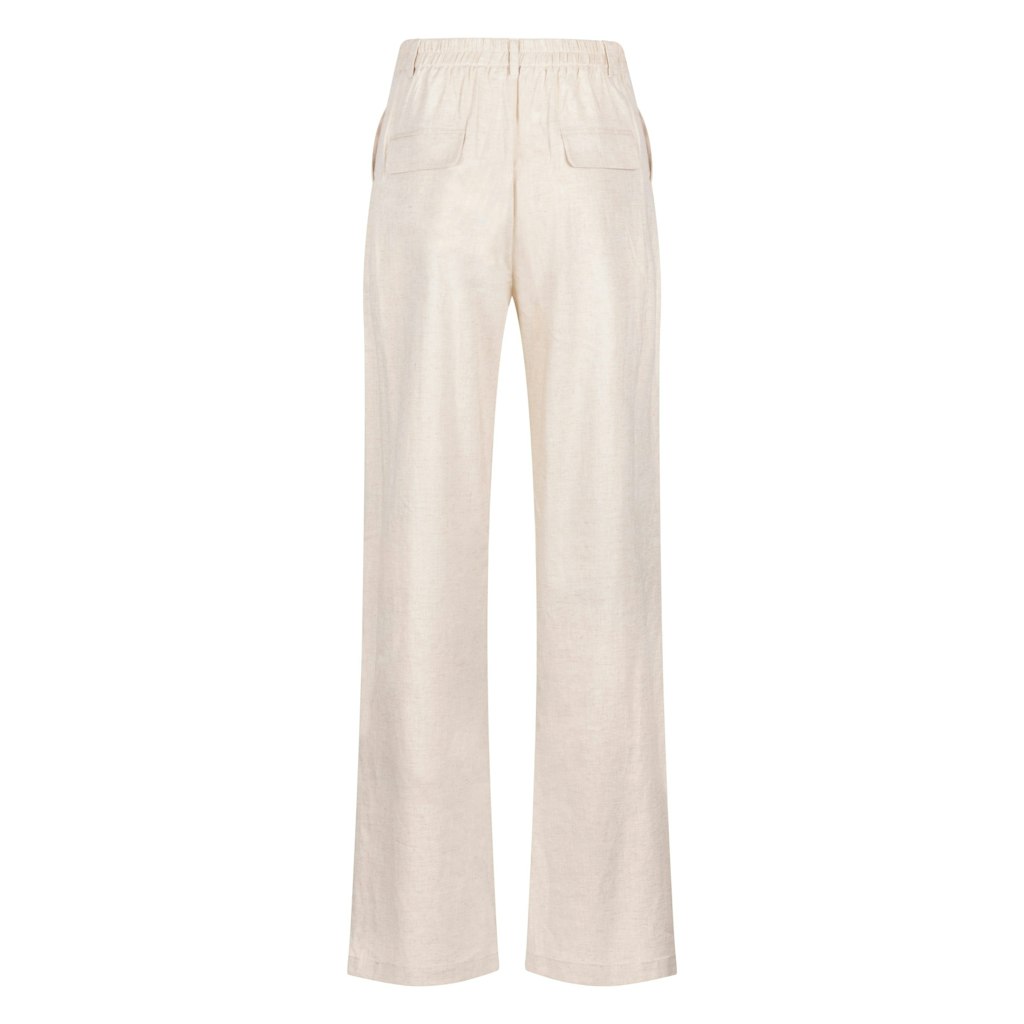 Deze prachtige beige dames pantalon van het merk NUKUS is de perfecte toevoeging aan jouw zomergarderobe. Het vrouwelijke model zorgt voor een elegante uitstraling en de kleur beige is helemaal on-trend dit seizoen. De pantalon is gemaakt van hoogwaardig materiaal, namelijk 67% viscose, 30% vlas of linnen en 3% elastaan. Dit zorgt voor een comfortabele pasvorm en een luchtige stof die perfect is voor de warme zomerdagen. Met deze pantalon ben jij helemaal klaar voor de zomer van 2026.