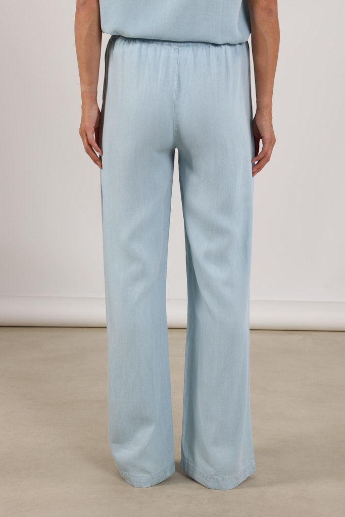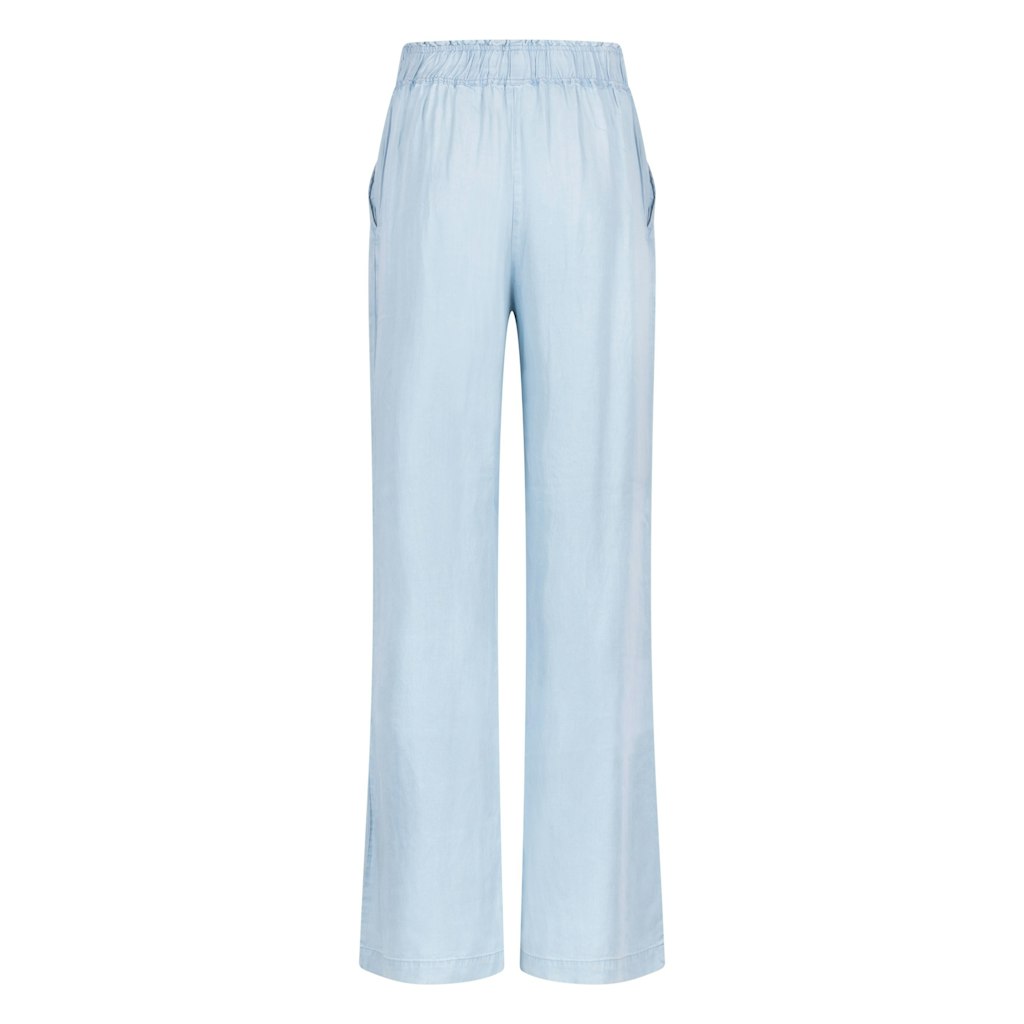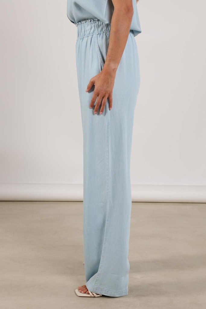 Deze lichtblauwe dames pantalon van het merk NUKUS is perfect voor de zomer. Het model is speciaal ontworpen voor vrouwen en heeft een elegante pasvorm. De broek is gemaakt van 100% Lyocell, wat zorgt voor een zachte en luchtige stof. Met deze pantalon ben je helemaal on-trend en klaar voor het jaar 2026. De blauwe kleur is tijdloos en past bij elke gelegenheid. Met deze broek straal je de stijl van NUKUS uit en laat je zien dat je modebewust bent.