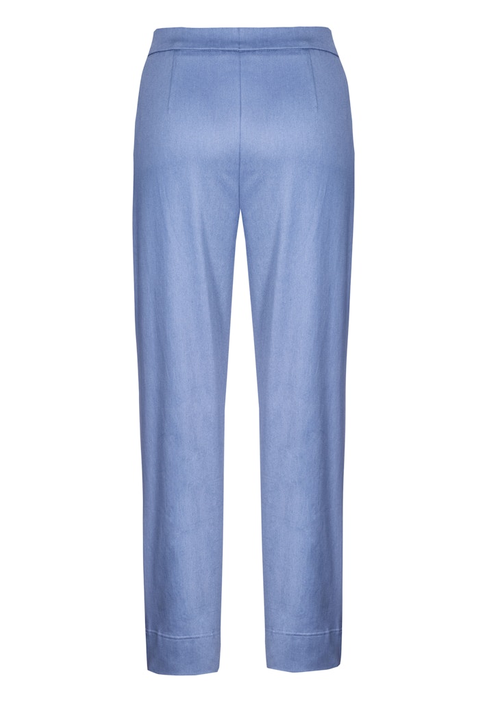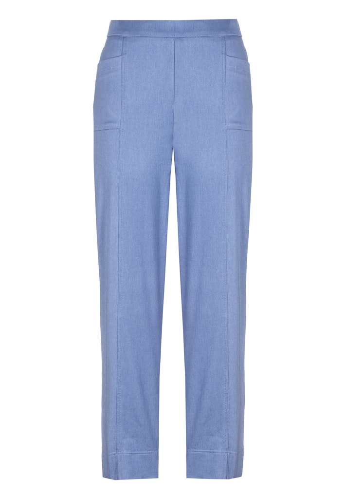 Deze dames broek van Frankwalder is perfect voor de zomer. De blauwe kleur geeft een frisse en vrouwelijke uitstraling. Het materiaal bestaat uit 66% katoen, 31% polyester en 3% elastaan, waardoor de broek comfortabel zit en goed meebeweegt met elke beweging. De broek is geschikt voor reiniging in machines met oplosmiddelen zoals perchloorethyleen en koolwaterstoffen. Dit zorgt ervoor dat de broek lang mooi blijft en zijn kleur behoudt. Met deze broek ben je helemaal klaar voor de zomer van 2026, dankzij de tijdloze stijl van Frankwalder.