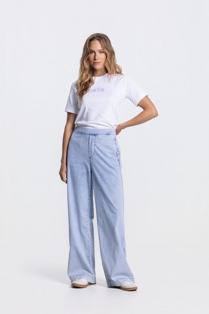 Deze dames broek van Jansen Amsterdam is perfect voor de zomer. De licht blauwe kleur geeft een frisse en vrouwelijke uitstraling, waardoor het perfect past bij het seizoen. Het materiaal van 98% katoen en 2% elastaan zorgt voor een comfortabele pasvorm en een luchtige stof. De broek is speciaal ontworpen voor vrouwen en past perfect bij de merkstijl van Jansen Amsterdam. Met deze broek ben je helemaal klaar voor de zomer van 2026.