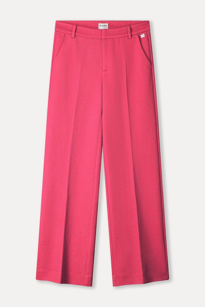 Deze roze dames broek van Pom is perfect voor de zomer van 2026. Het is een echt vrouwelijk item dat de merkstijl van Pom benadrukt. De broek is gemaakt van 97% polyester en 3% elastaan, waardoor het comfortabel en lichtgewicht is. De zachte roze kleur is niet alleen trendy, maar ook de zoekkleur van dit seizoen. Met deze broek ben je helemaal klaar voor de zomer en straal je zelfvertrouwen en stijl uit.