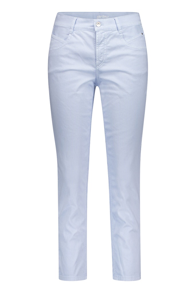 Deze dames broek van Atelier Gardeur is de perfecte toevoeging aan jouw zomergarderobe. De 5 pocket broek is gemaakt van een lichtblauwe stof en heeft een vrouwelijke pasvorm. De broek is gemaakt van 74% katoen, 15% polyester, 8% Elastomultiester en 3% Lyocell, waardoor het heerlijk zacht en comfortabel aanvoelt. Het merk Atelier Gardeur staat bekend om haar stijlvolle en tijdloze ontwerpen, en dat is zeker terug te zien in deze broek. Perfect voor een dagje uit of een zomerse avondwandeling. De broek is gemakkelijk te onderhouden en kan gestreken worden op een lage temperatuur. Met deze broek ben jij helemaal klaar voor de zomer van 2026.