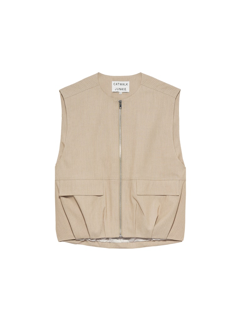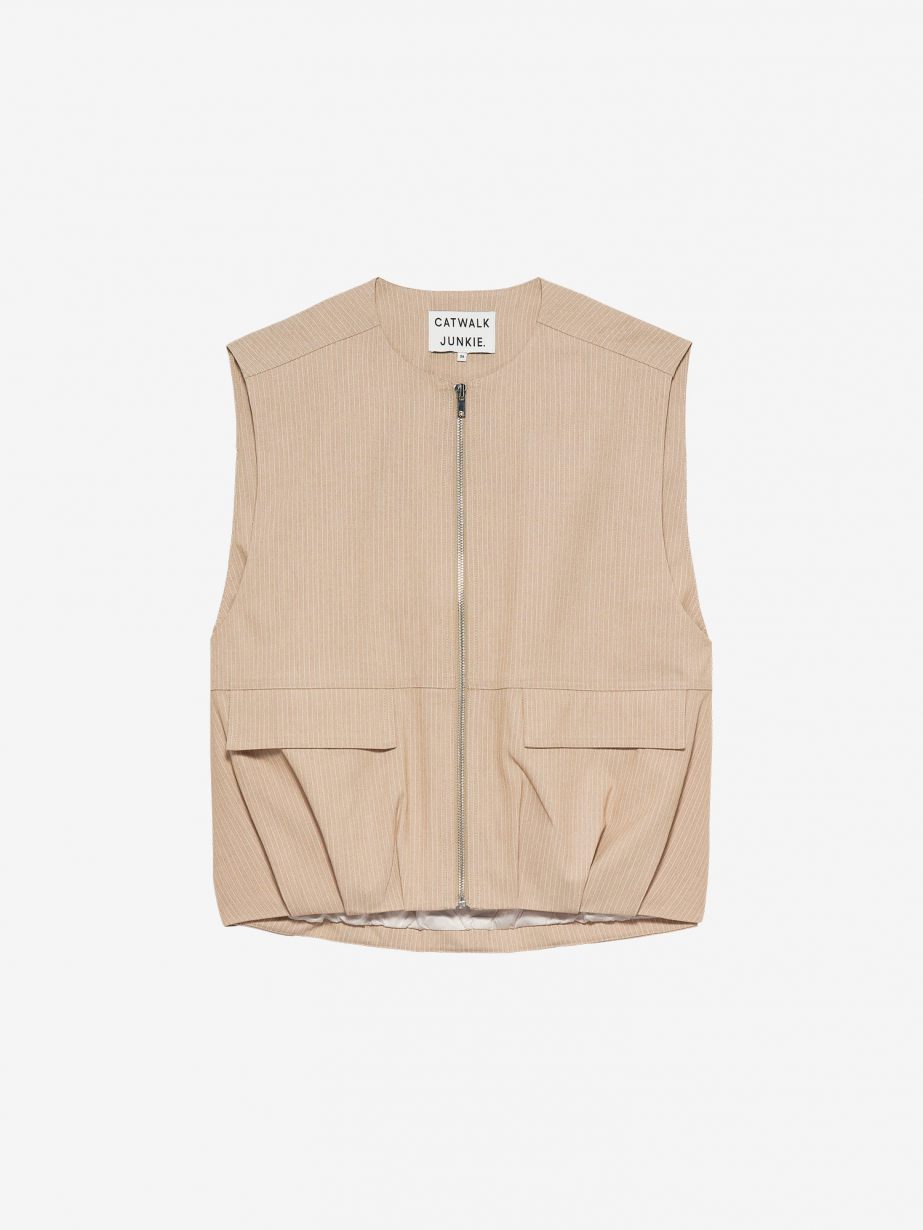 Dit beige dames gilet van Catwalk Junkie is een echte must-have voor de zomer van 2026. Het mouwloze gilet heeft een ronde hals en sluit met een handige rits. De grijze kleur geeft het gilet een stoere uitstraling en past perfect bij de merkstijl van Catwalk Junkie. Gemaakt van 67% polyester, 29% viscose en 4% elastaan, is dit gilet niet alleen stijlvol maar ook comfortabel om te dragen. Een perfecte toevoeging aan je zomergarderobe voor een vrouwelijke touch.