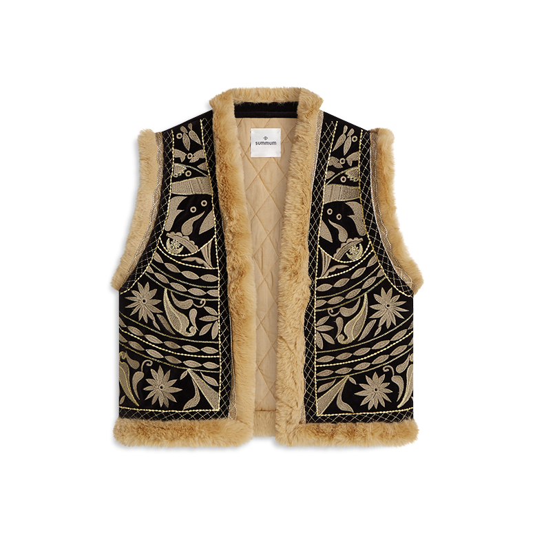 Dit stijlvolle Dames Gilet van het merk Summum is een must-have voor de winter van 2025. Het mouwloze gilet is perfect voor de moderne vrouw die op zoek is naar een trendy en tijdloze toevoeging aan haar garderobe. De zwarte print geeft het gilet een elegante uitstraling en past bij elke gelegenheid. Het gilet is speciaal ontworpen voor dames en is geschikt voor het winterseizoen. Met dit gilet ben je verzekerd van een fashionable look die perfect past bij de merkstijl van Summum.