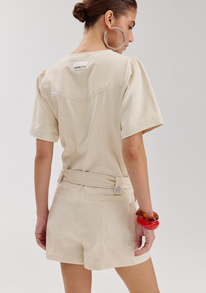 Deze ecrukleurige dames jumpsuit van Harper & Yve is een must-have voor de zomer van 2026. De ronde hals en korte mouwen geven deze jumpsuit een vrouwelijke uitstraling. De witte kleur zorgt voor een frisse en zomerse look. Harper & Yve staat bekend om haar stijlvolle en trendy kleding, en dat is zeker terug te zien in deze jumpsuit. Perfect voor een dagje strand of een avondje uit, deze jumpsuit is geschikt voor elke gelegenheid. Laat jezelf stralen in deze prachtige jumpsuit van Harper & Yve.