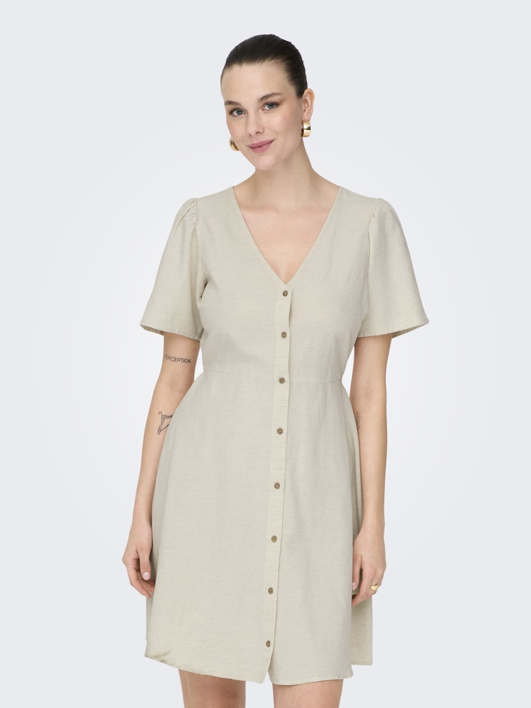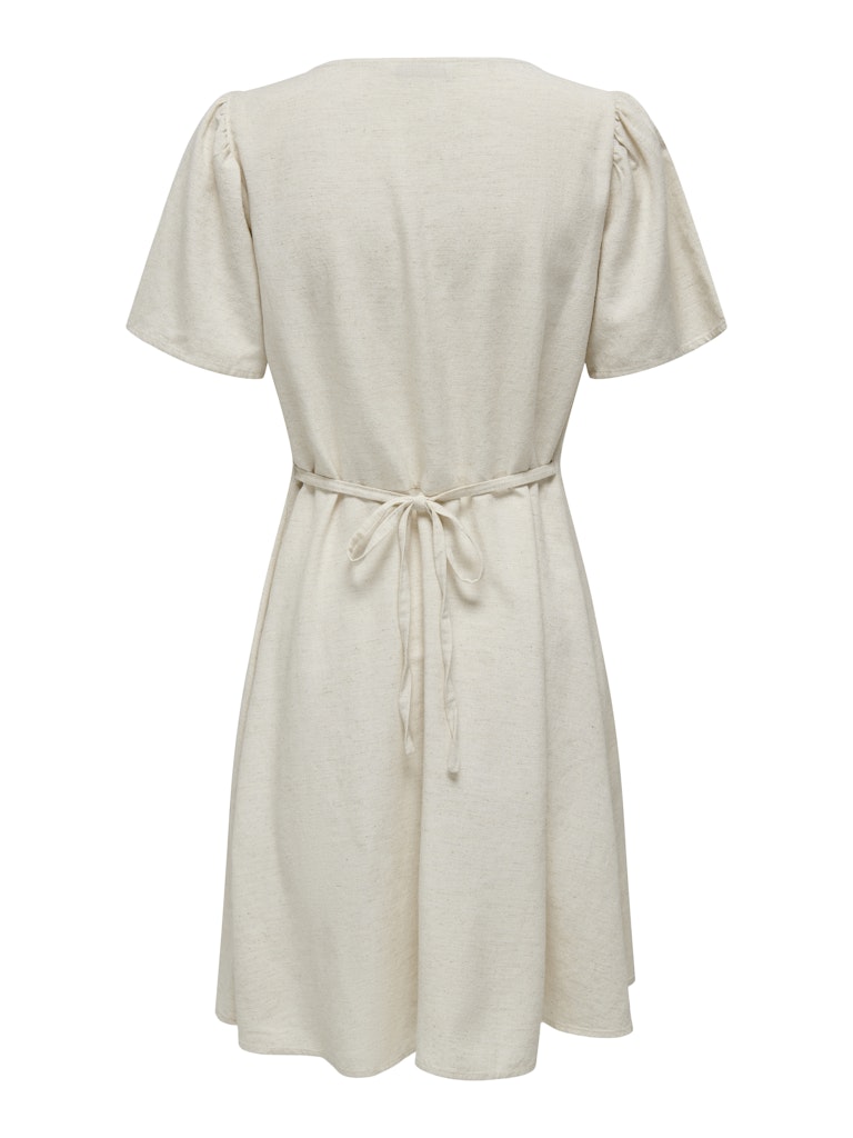 Deze prachtige damesjurk van het merk Only is een must-have voor elke vrouw. Deze NOS jurk is perfect voor elk seizoen en heeft een vrouwelijke uitstraling. De jurk is uitgevoerd in de kleur Pumice Stone, een mooie grijstint die gemakkelijk te combineren is met andere kleuren. De jurk is gemaakt van hoogwaardig materiaal, bestaande uit 50% viscose, 40% katoen en 10% vlas of linnen. Hierdoor voelt de jurk zacht en comfortabel aan op de huid. De wasvoorschriften voor deze jurk zijn eenvoudig, namelijk 30°C bonte was. Met deze tijdloze jurk ben je helemaal klaar voor het jaar 2026.