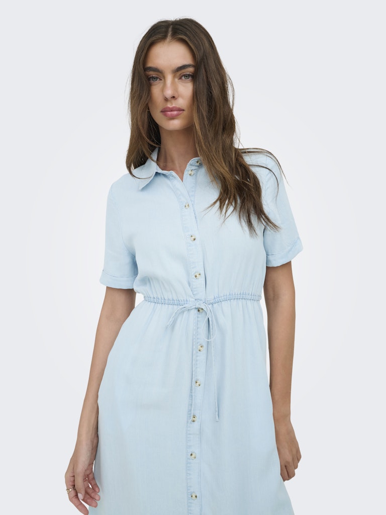Deze lichtblauwe denim jurk van het merk Only is perfect voor de zomer. Het vrouwelijke model is gemaakt van 100% Lyocell en heeft een stijlvolle uitstraling die perfect past bij de merkstijl van Only. De jurk is geschikt voor alle gelegenheden en kan gemakkelijk gecombineerd worden met verschillende accessoires. Het is een tijdloos item dat je nog jarenlang kunt dragen. De jurk is eenvoudig te reinigen, je kunt hem gewoon in de reinigingsmachine wassen met oplosmiddelen zoals perchloorethyleen en koolwaterstoffen. Met deze jurk ben je helemaal klaar voor de zomer van 2026.