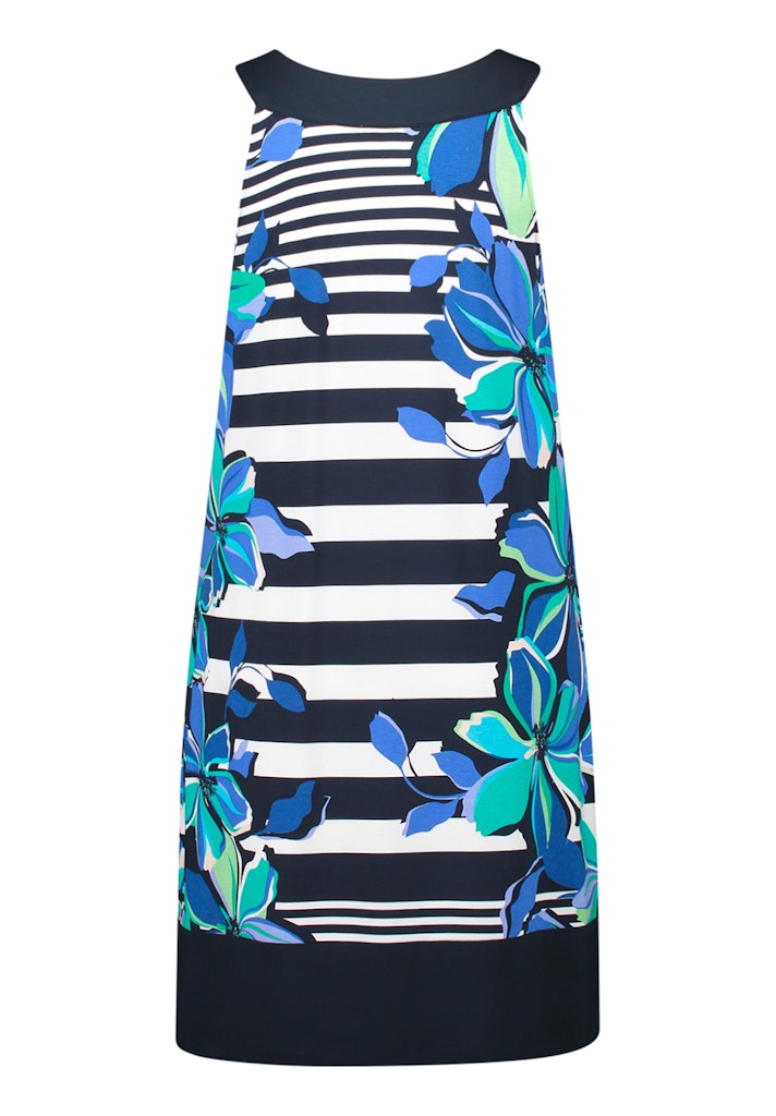 Betty Barclay staat bekend om haar stijlvolle en vrouwelijke kleding, en deze jurk is daar een perfect voorbeeld van. Deze prachtige dames jurk is ideaal voor de zomer, met zijn luchtige stof en opvallende kleurencombinatie van donkerblauw en groen. Het materiaal van 95% viscose en 5% elastaan zorgt voor een comfortabele pasvorm en maakt het gemakkelijk om te strijken op een lage temperatuur. Met deze jurk ben je helemaal klaar voor de zomer van 2026.
