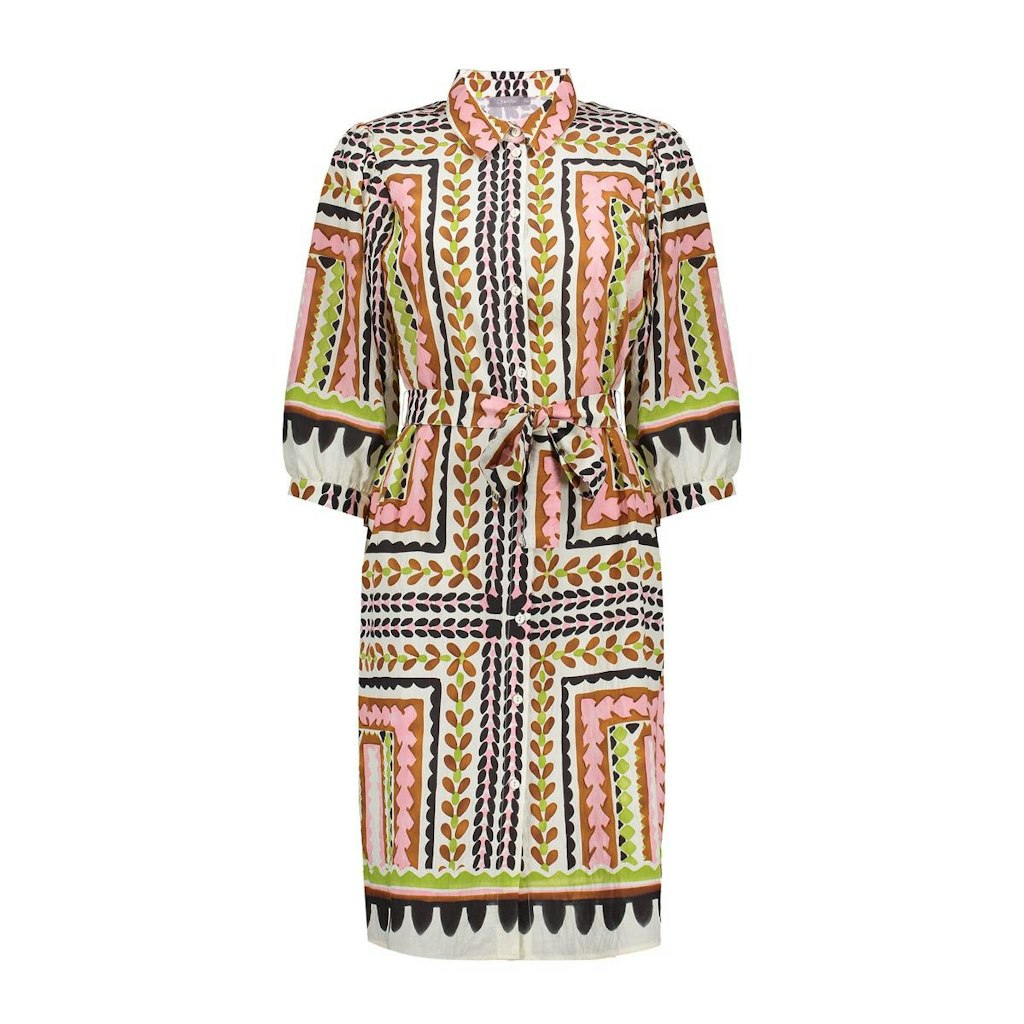 Deze prachtige damesjurk van het merk Geisha is perfect voor de zomer. Het is een echte eyecatcher door de multicolor print en de knoopsluiting aan de voorkant. De half lange mouwen geven de jurk een speelse en vrouwelijke uitstraling. Gemaakt van 83% viscose en 17% polyamide, voelt de jurk licht en comfortabel aan op de huid. Met deze jurk ben je helemaal on-trend en klaar voor het jaar 2026.