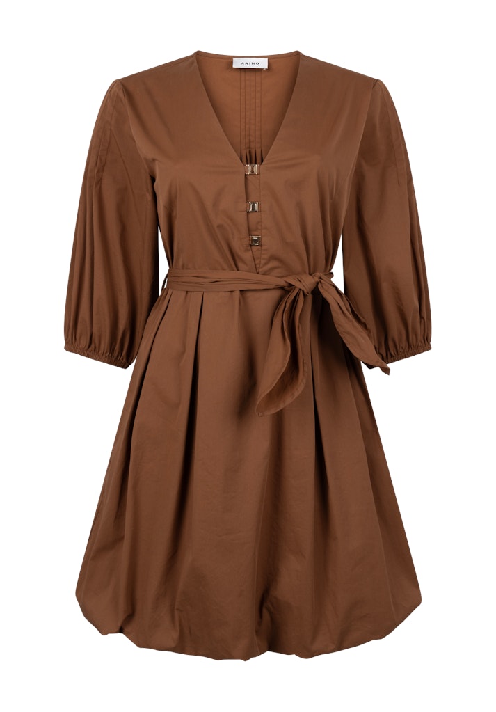 Deze prachtige bruine dames jurk van het merk Aaiko is een must-have voor elke vrouwelijke zomergarderobe. De jurk heeft een elegante V-hals en half lange mouwen, wat zorgt voor een vrouwelijke en stijlvolle uitstraling. De bruine kleur is perfect voor de zomer en geeft een warme en natuurlijke look. De jurk is gemaakt van hoogwaardig materiaal, namelijk 97% polyester en 3% elastaan, wat zorgt voor een comfortabele pasvorm en een mooie vormbehoud. Met deze jurk ben je helemaal klaar voor het zomerseizoen van 2026.