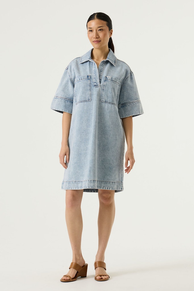 Deze dames jurk van het merk Garcia is perfect voor de zomer. Het vrouwelijke model is gemaakt van 100% katoen en heeft een medium used blauwe kleur. De jurk is ideaal voor warme dagen en heeft een trendy uitstraling door de merkstijl van Garcia. Met deze jurk ben je helemaal klaar voor het jaar 2026.