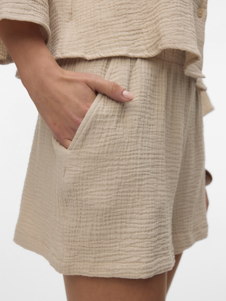 De Vero Moda dames korte broek is een must-have voor elke vrouwelijke kledingkast. Deze korte broek is perfect voor het komende seizoen en heeft een tijdloos design dankzij de NOS (Never Out of Stock) collectie. De broek is gemaakt van 100% katoen en heeft een zachte grijze kleur genaamd Silver Lining. De broek is gemakkelijk te onderhouden en kan gewassen worden op 30°C in de bonte was. Met deze broek ben je helemaal klaar voor de zomer van 2026.