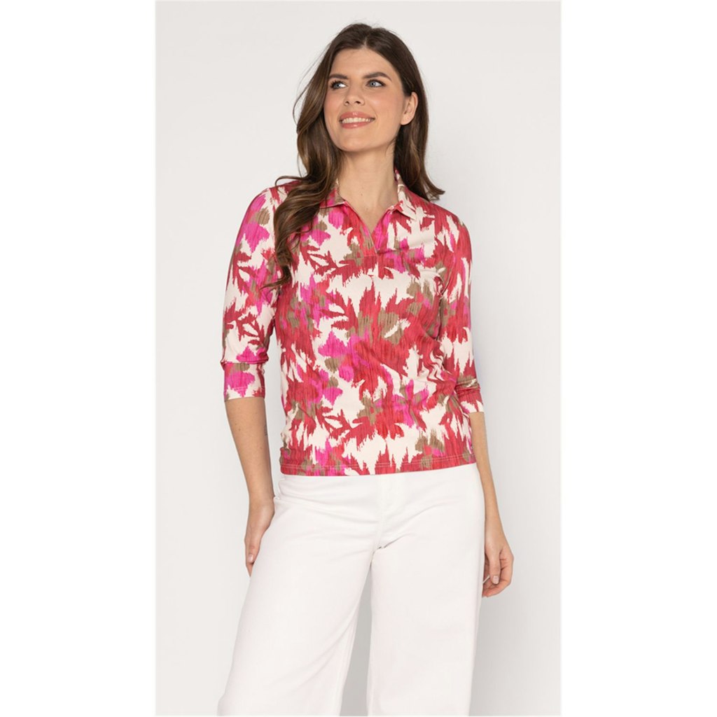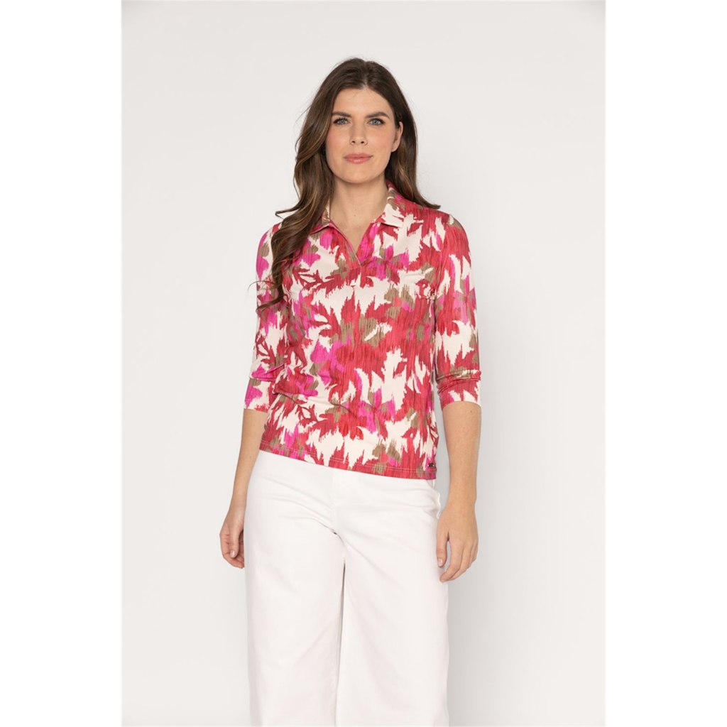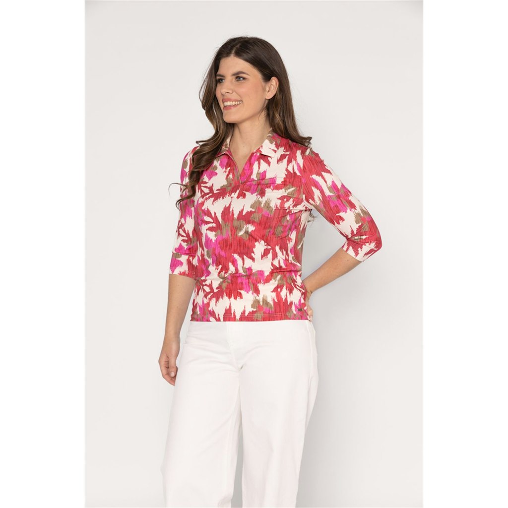 Deze dames polo van het merk Roberto Sarto is perfect voor de zomer. De polo heeft een vrouwelijke pasvorm en is voorzien van een opvallende roze print. De half lange mouwen zorgen voor een speelse uitstraling. Het item is gemaakt van hoogwaardig materiaal en kan gewassen worden op 30°C fijne was/wolwas. De multicolor print maakt het gemakkelijk om te combineren met verschillende outfits. Met deze polo ben je helemaal klaar voor het zomerseizoen van 2026.