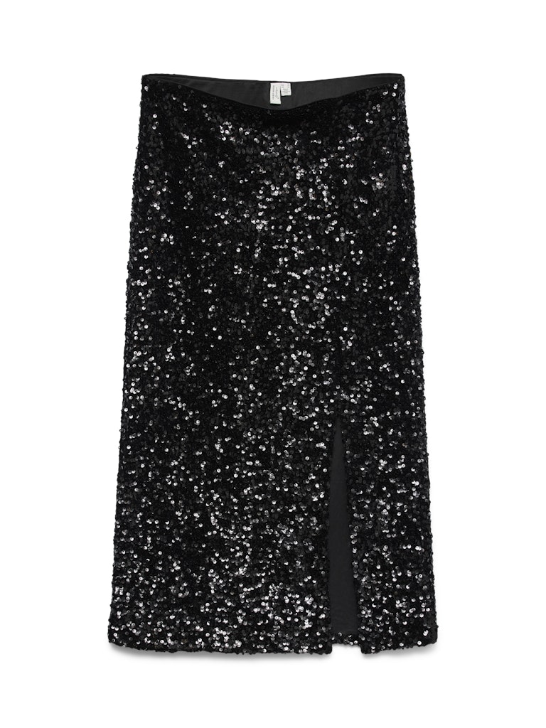Deze prachtige dames rok van het merk Vero Moda is perfect voor de winter van 2025. De rok is gemaakt van hoogwaardige materialen en heeft een elegante uitstraling die past bij de stijl van Vero Moda. De zwarte kleur met glinsterende zwarte pailletten zorgt voor een chique en feestelijke look. Deze rok is speciaal ontworpen voor dames en is een must-have item voor elke modieuze vrouw. Met deze rok ben je klaar voor elke gelegenheid, of het nu een feestje is of een dag op kantoor. Laat jezelf stralen in deze prachtige Vero Moda rok.