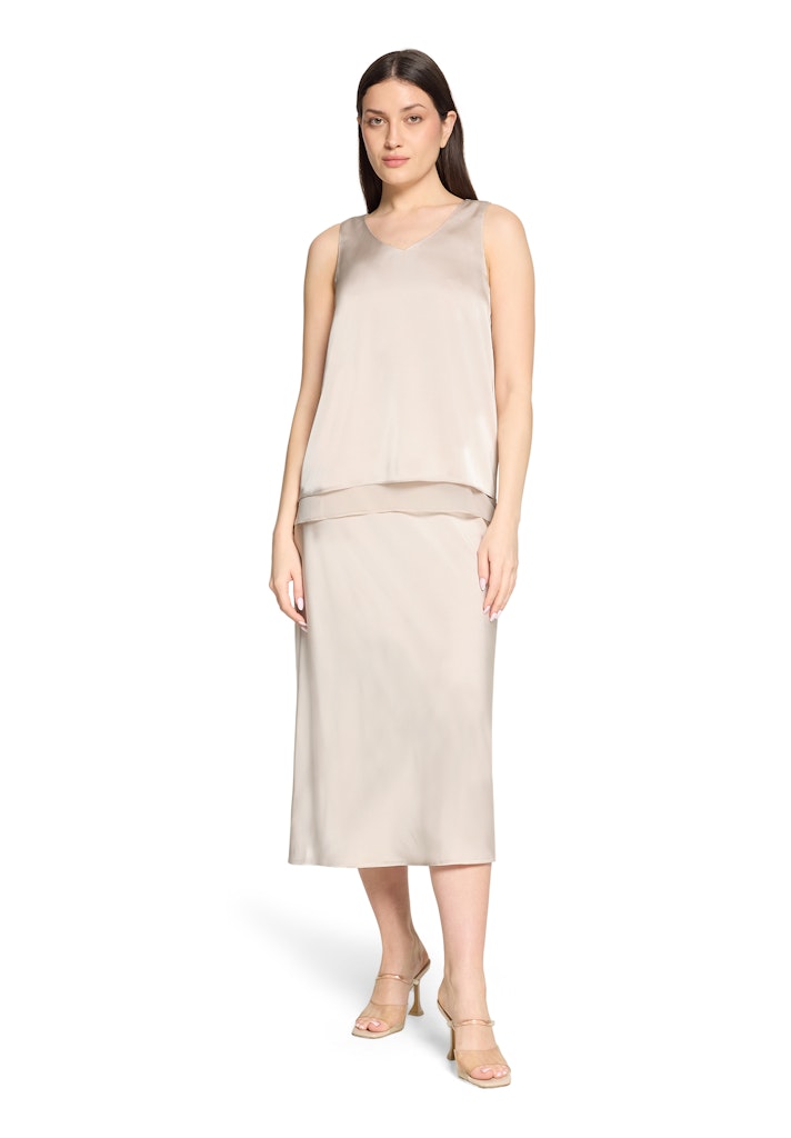 Deze lichtbeige damesrok van het merk Betty Barclay is perfect voor de zomer. Het vrouwelijke design en de zachte kleur passen perfect bij de merkstijl van Betty Barclay. De rok is gemaakt van 100% polyester en kan gemakkelijk gewassen worden op 30°C fijne was of wolwas. Met deze rok ben je helemaal klaar voor het zomerseizoen van 2026.