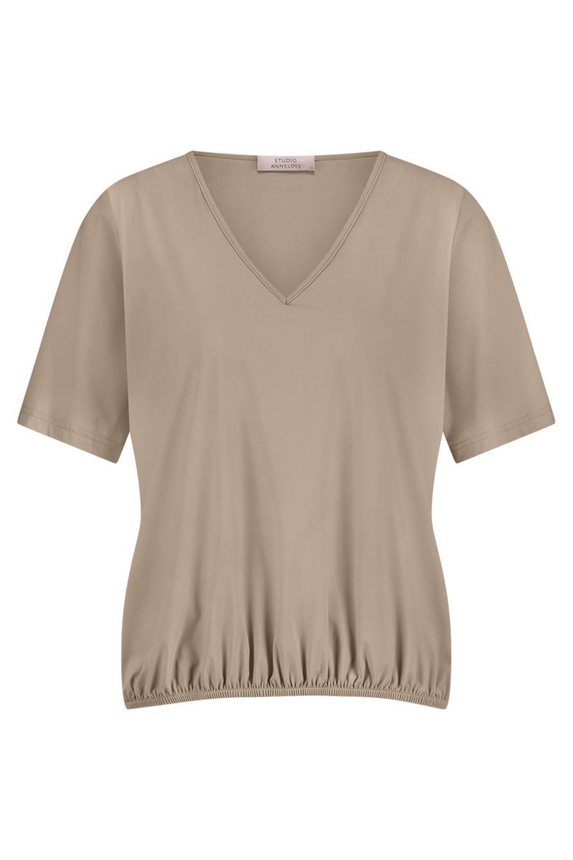 Dit beige dames T-shirt van Studio Anneloes is perfect voor de zomer. Het shirt heeft een vrouwelijke V-hals en korte mouwen, wat zorgt voor een casual en luchtige look. Het is gemaakt van een onbekend materiaal, namelijk 100% polyester, wat zorgt voor een comfortabele pasvorm. Het buitenmateriaal bestaat uit 73% polyamide en 27% elastaan, wat zorgt voor een mooie pasvorm en stretch. Dit T-shirt is geschikt voor reiniging in machines met perchloorethyleen en koolwaterstoffen als oplosmiddelen. De kleur beige is tijdloos en past bij elke outfit. Met dit T-shirt van Studio Anneloes ben je helemaal klaar voor de zomer van 2026.