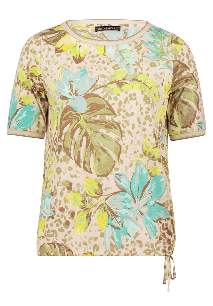 Het Betty Barclay dames T-shirt is een must-have voor elke vrouw die op zoek is naar een stijlvolle en comfortabele outfit voor de zomer. Dit T-shirt is gemaakt van een mix van 50% katoen en 50% Modal, waardoor het zacht aanvoelt op de huid en tegelijkertijd ademend is. De beige en gele kleuren geven het shirt een frisse en zomerse uitstraling, perfect voor de warme dagen. Het shirt is voorzien van het bekende Betty Barclay merklogo, wat de merkstijl benadrukt. Het is geschikt voor vrouwen en kan gemakkelijk gecombineerd worden met verschillende outfits. Dit T-shirt is ook nog eens gemakkelijk te onderhouden, aangezien het op lage temperatuur gestreken kan worden. Met het Betty Barclay dames T-shirt ben je helemaal klaar voor de zomer van 2026.