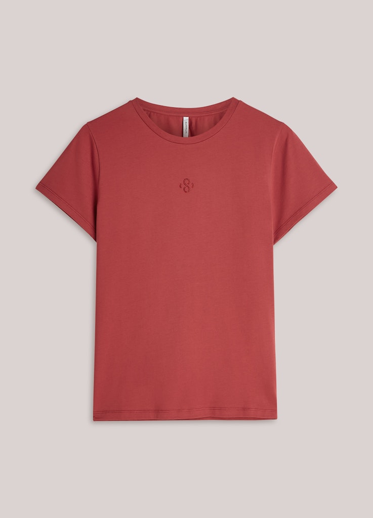 Dit rode dames T-shirt van het merk Summum is een perfecte toevoeging aan je zomergarderobe. Het T-shirt heeft een ronde hals en korte mouwen, wat zorgt voor een vrouwelijke en casual uitstraling. Het is gemaakt van 100% katoen, wat zorgt voor een comfortabele en ademende pasvorm. Het T-shirt is gemakkelijk te onderhouden, want het kan gestreken worden op een lage temperatuur. De rode kleur is een echte eyecatcher en past perfect bij het zomerseizoen. Met dit T-shirt ben je helemaal klaar voor het jaar 2026.