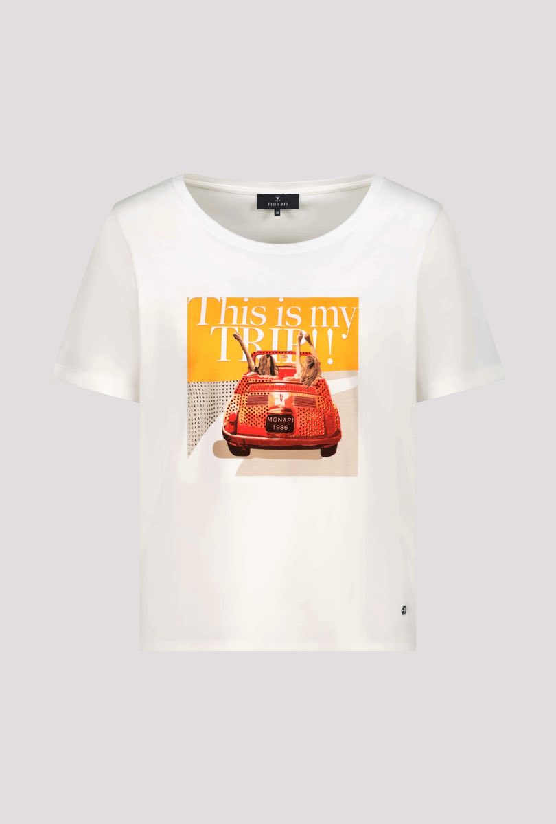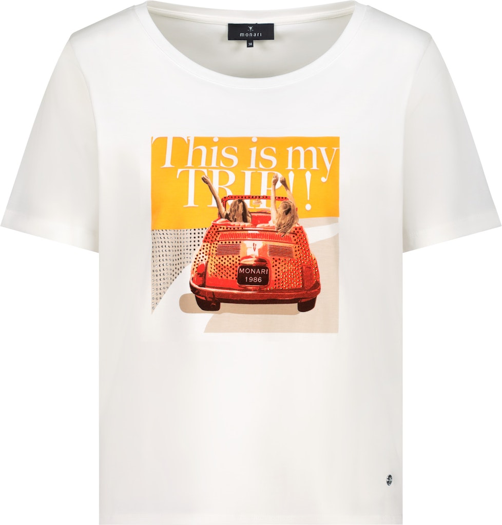 Het Monari dames T-shirt is een must-have voor de zomer van 2026. Dit stijlvolle en trendy shirt is perfect voor dames die op zoek zijn naar comfort en een eigentijdse uitstraling. Het shirt is uitgevoerd in een prachtige OFF-WHITE kleur, wat zorgt voor een frisse en zomerse look. Het merk Monari staat bekend om haar unieke stijl en dit T-shirt is daar een perfect voorbeeld van. Het is een onmisbaar item in de garderobe van elke modebewuste vrouw.
