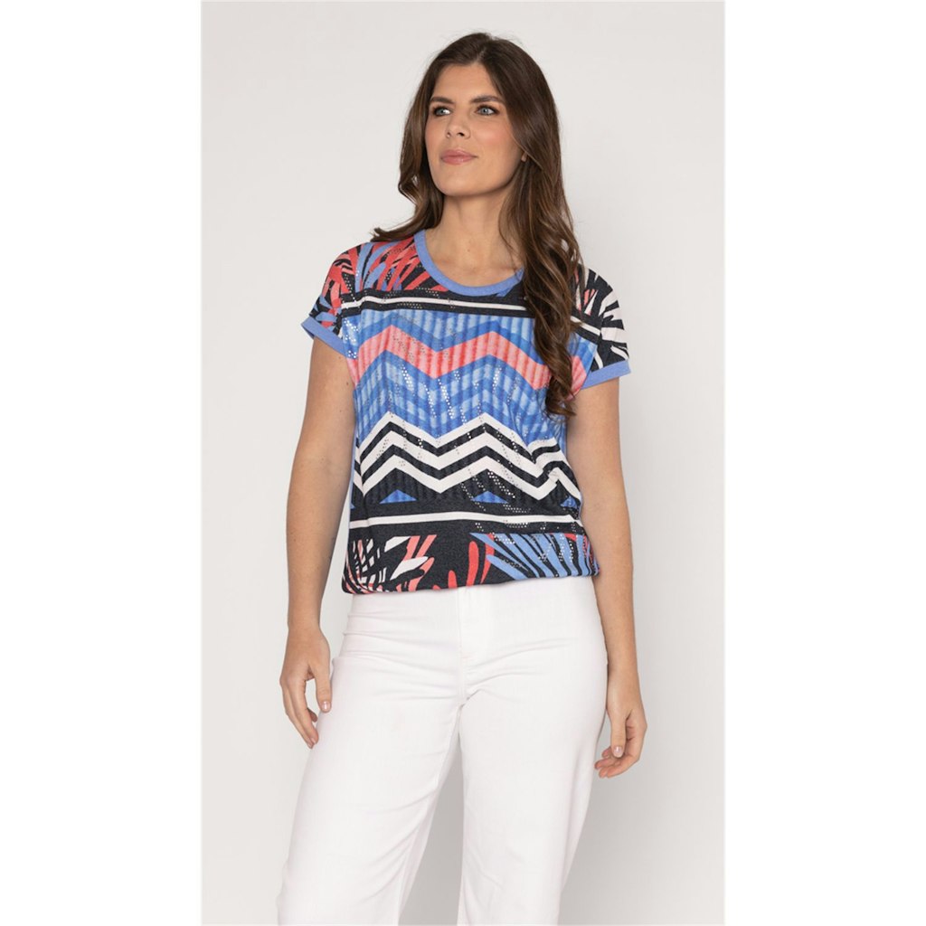 Het dames T-shirt van het merk Roberto Sarto is een must-have voor elke vrouw in de zomer van 2026. Dit trendy shirt heeft een ronde hals en korte mouwen, wat zorgt voor een vrouwelijke uitstraling. De blauwe print in multicolor geeft het shirt een speelse en vrolijke look. Het shirt is gemaakt van hoogwaardig materiaal en kan gewassen worden op 30°C fijne was/wolwas. Hierdoor blijft de kleur en kwaliteit van het shirt behouden. Met dit T-shirt ben je helemaal in lijn met de stijl van Roberto Sarto en straal je zelfverzekerdheid uit. Een echte aanwinst voor je zomergarderobe!