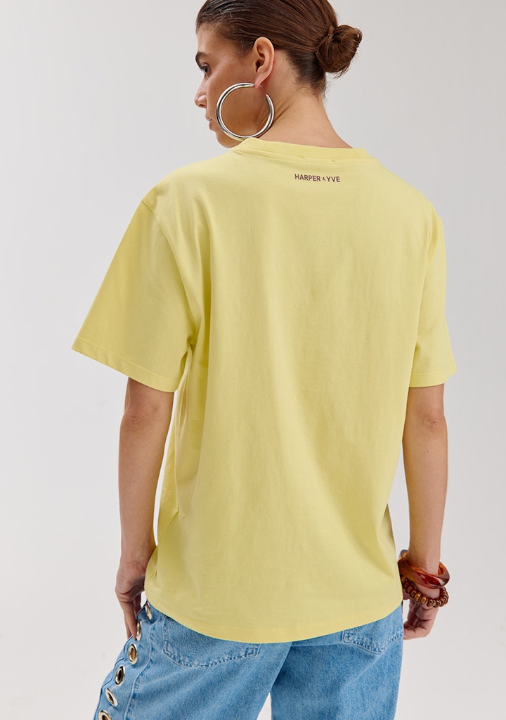 Het gele dames T-shirt van Harper & Yve is een must-have voor elke vrouw in de zomer van 2026. De ronde hals en korte mouwen zorgen voor een comfortabele pasvorm en de 100% katoenen stof voelt zacht aan op de huid. De kleur geel is perfect voor het zomerseizoen en past goed bij de stijl van het merk. Dit T-shirt is geschikt voor elke gelegenheid en geeft een vrouwelijke touch aan elke outfit. Kies voor het gele dames T-shirt van Harper & Yve en straal in de zomer van 2026.
