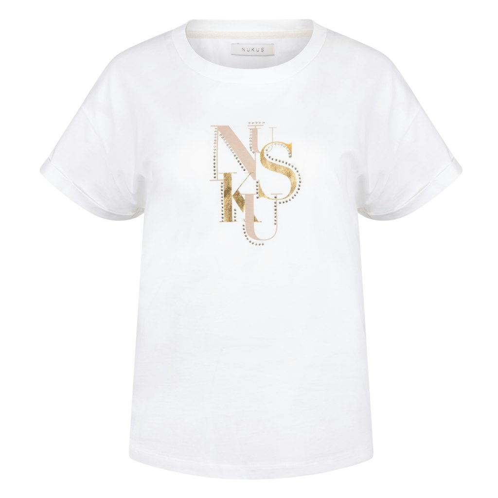 Het dames T-shirt van NUKUS is een must-have voor elke vrouw in de zomer van 2026. Dit ecru-kleurige shirt is gemaakt van 100% katoen en heeft een comfortabele ronde hals en korte mouwen. Het is de perfecte toevoeging aan elke zomerse outfit en past bij elke gelegenheid. De stijlvolle en tijdloze uitstraling van dit T-shirt weerspiegelt de merkstijl van NUKUS. Het is een tijdloos en vrouwelijk kledingstuk dat niet mag ontbreken in de kledingkast van elke vrouw.