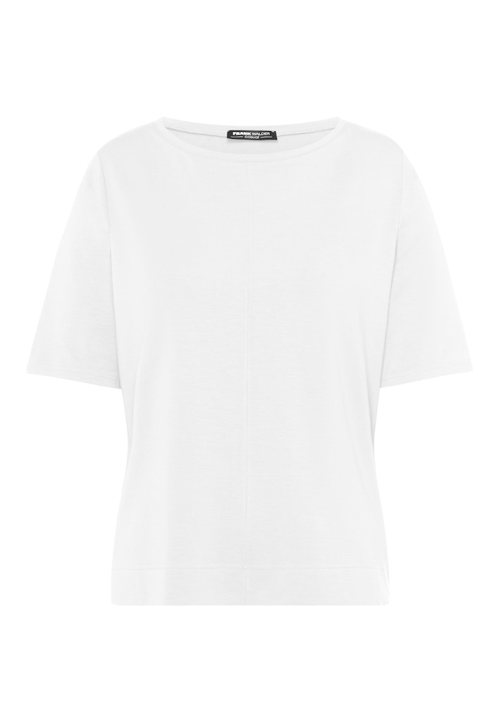 Dit dames T-shirt van Frankwalder is een must-have voor de zomer. Het shirt is gemaakt van een combinatie van 48% Modal, 48% katoen en 4% Elastaan, wat zorgt voor een comfortabele pasvorm. De witte kleur en het vrouwelijke design passen perfect bij de stijl van het merk. Het shirt is geschikt voor reiniging in machines met oplosmiddelen zoals perchloorethyleen en koolwaterstoffen. Met dit T-shirt ben je helemaal klaar voor de zomer van 2026.