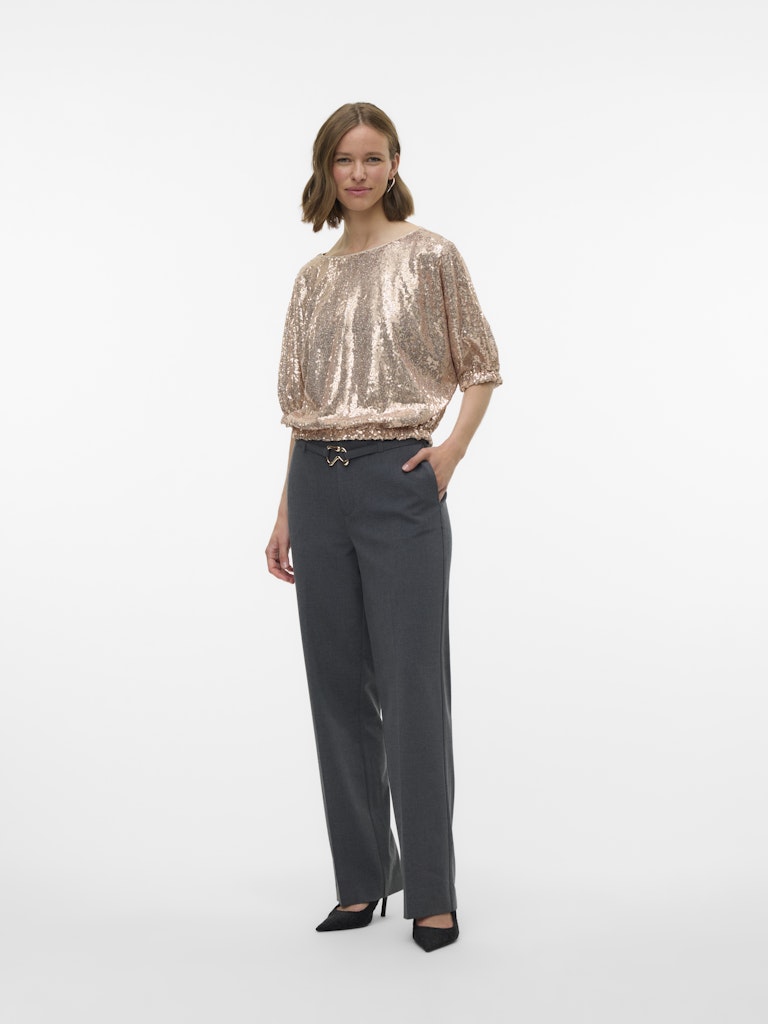Deze stijlvolle dames top van Vero Moda is perfect voor het winterseizoen van 2025. De top heeft een elegante uitstraling dankzij de combinatie van de kleuren Pumice Stone en Champagne sequins. Het merk Vero Moda staat bekend om haar trendy en vrouwelijke stijl, wat ook terug te zien is in deze top. Het is een must-have item voor elke moderne vrouw die er graag stijlvol uitziet. De top is speciaal ontworpen voor dames en zal zeker een favoriet worden in de kledingkast van elke fashionista.