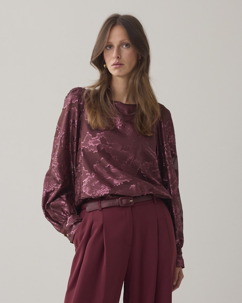 Deze prachtige dames top van het merk Summum is een must-have voor elke vrouw. De top is uitgevoerd in een diepe, warme kleur donker rood en heeft een elegante ronde hals. De lange mouwen maken deze top perfect voor het winterseizoen van 2025. De top is gemaakt van hoogwaardige materialen en heeft een comfortabele pasvorm. Met deze top straal je gegarandeerd de stijl van Summum uit.