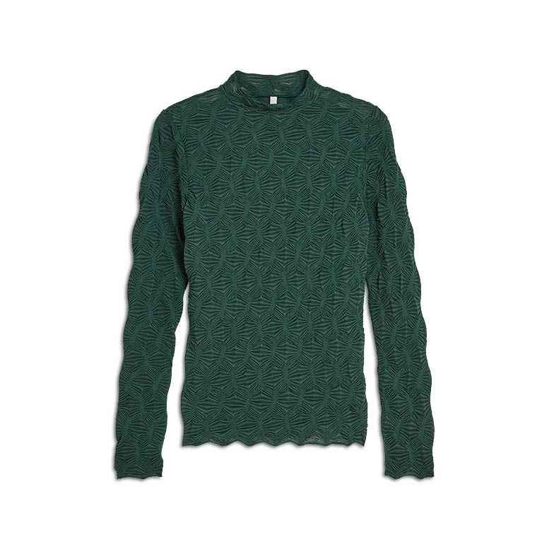 Deze donker groene dames top van het merk Summum is een must-have voor de winter van 2025. De lange mouwen en de turtle hals zorgen voor een warm en comfortabel gevoel tijdens koude dagen. De top is perfect te combineren met verschillende outfits en past bij de stijl van Summum: tijdloos en elegant. De top is gemaakt van hoogwaardige materialen en is geschikt voor alle gelegenheden. Met deze top ben je helemaal klaar voor de winter van 2025.