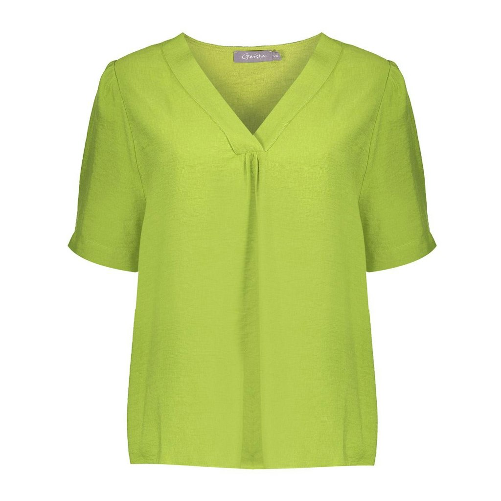 Deze Geisha dames top is perfect voor de zomer. Het is een echte must-have voor elke vrouwelijke garderobe. De top heeft een V-hals en korte mouwen, waardoor het een luchtige en vrouwelijke uitstraling heeft. De kleur van de top is lime, wat ook wel bekend staat als groen. Dit maakt het een opvallend en trendy item. De top is gemaakt van 88% viscose en 12% polyamide, wat zorgt voor een comfortabele pasvorm en een lichte glans. De Geisha stijl is duidelijk terug te zien in dit item, waardoor het perfect past bij de moderne vrouw. Met deze top ben je helemaal klaar voor de zomer van 2026.