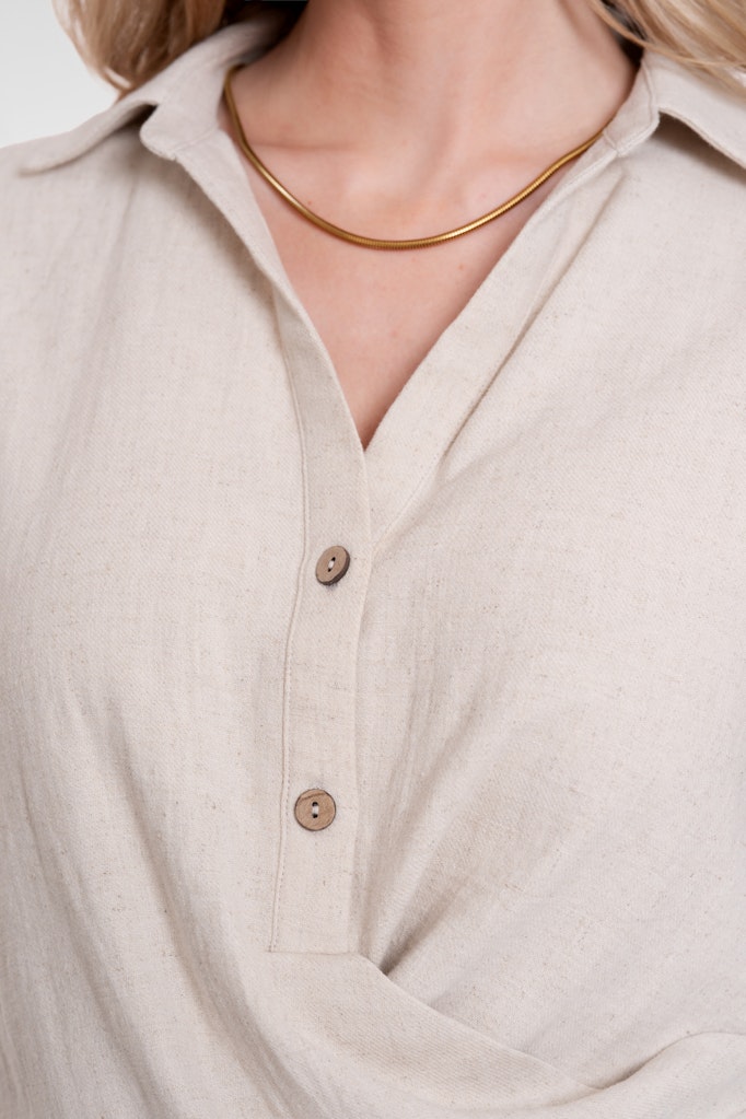 Deze stijlvolle dames top van Geisha is perfect voor de zomer. De mouwloze top heeft een elegante V-hals en is uitgevoerd in een prachtige ecru kleur, ook wel bekend als beige. De top is gemaakt van een combinatie van 70% katoen en 30% vlas of linnen, wat zorgt voor een comfortabele en luchtige pasvorm. De top is geschikt voor alle vrouwelijke seizoenen en is een tijdloze toevoeging aan elke garderobe. Met deze top straal je gegarandeerd in de zomer van 2026!
